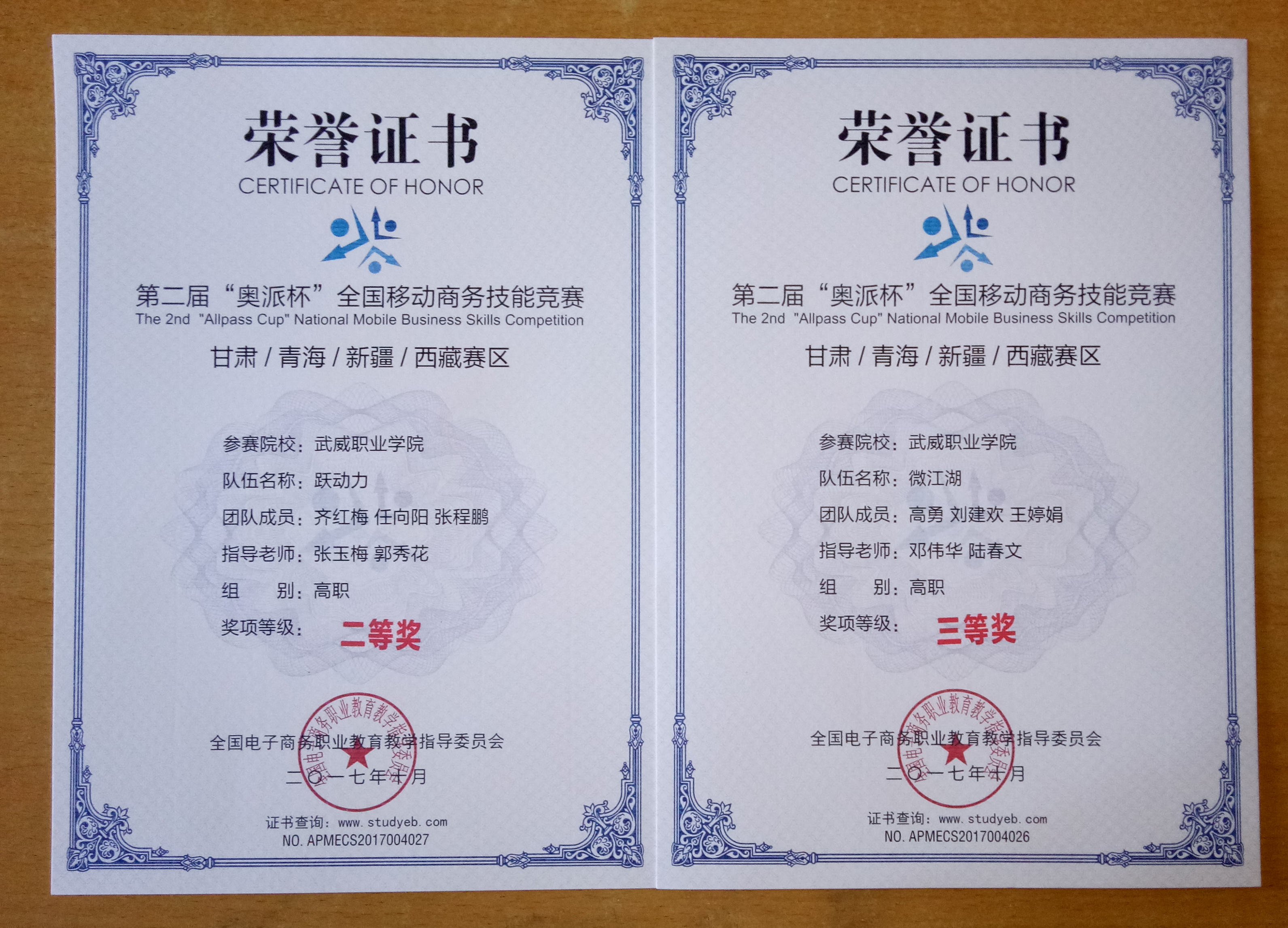 來自甘、青、新、藏24所院校的54支中、高職隊(duì)伍參加比賽。此次大賽旨在檢驗(yàn)和展示職業(yè)院校移動(dòng)商務(wù)專業(yè)教學(xué)成果,以賽促建,以賽促教,推進(jìn)移動(dòng)商務(wù)專業(yè)在職業(yè)院校中的布點(diǎn)建設(shè),引領(lǐng)高等職業(yè)學(xué)校電子商務(wù)專業(yè)教學(xué)改革及移動(dòng)商務(wù)專業(yè)建設(shè)的新趨勢(shì)。競(jìng)賽經(jīng)過激烈的角逐,我系與電子信息工程系聯(lián)合由齊紅梅、任向陽、張程鵬組成的“躍動(dòng)力”隊(duì)獲得團(tuán)體二等獎(jiǎng),由高勇、劉建歡、王婷娟組成的“微江湖”隊(duì)獲得省級(jí)三等獎(jiǎng),我系教師郭秀花和電子信息工程系張玉梅老師分別獲得優(yōu)秀指導(dǎo)老師獎(jiǎng)。