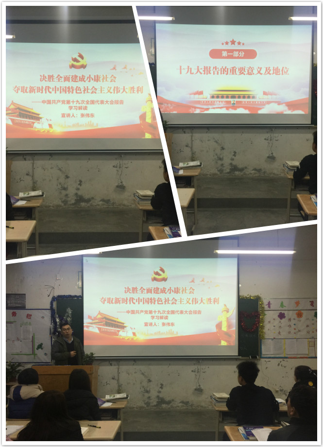 12月20日晚自習(xí)時(shí)間,在17級(jí)計(jì)算機(jī)網(wǎng)絡(luò)大專(zhuān)班教室,電信系黨員教師張偉東同志給學(xué)生們以《深入學(xué)習(xí)重點(diǎn)解讀十九屆大會(huì)議報(bào)告精神》為主題,對(duì)十九大報(bào)告進(jìn)行了全方位的宣講解讀。