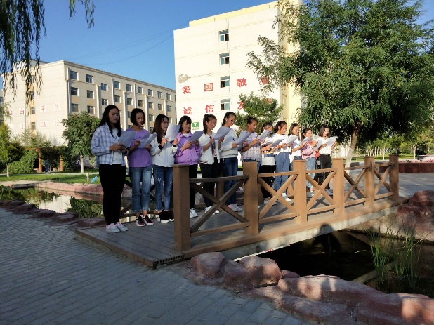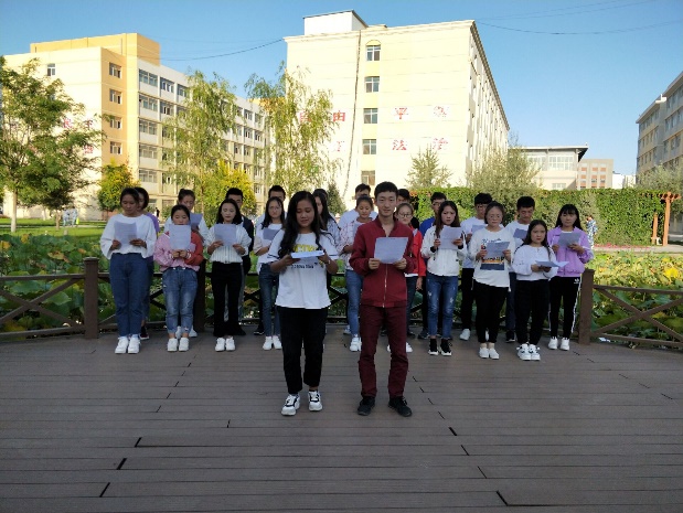 同學(xué)們分別在圖書(shū)館、荷花池等地方進(jìn)行詩(shī)詞朗誦及詩(shī)詞交流。朗誦的詩(shī)詞主要有明代張恒的《涼州詞》、唐代李白的《關(guān)山月》及唐代王昌齡的《從軍行》等多篇優(yōu)秀作品。