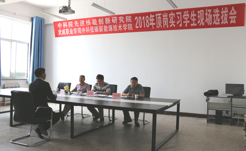 ? ? ? ?2018年6月21日,中國科學(xué)院先進(jìn)核能創(chuàng)新研究院在學(xué)院舉行了2018年頂崗實(shí)習(xí)學(xué)生現(xiàn)場選撥會(huì),由中科院先進(jìn)核能創(chuàng)新研究院綜合管理部常務(wù)副主任王納秀、熔鹽機(jī)械部熱工組組長王曉和中科武威新能源研究所所長朱智勇組成的專家組對能源類專業(yè)和機(jī)械類專業(yè)學(xué)生進(jìn)行了現(xiàn)場面試,遴選出的14名同學(xué)將于7月份前往中國科學(xué)院先進(jìn)核能創(chuàng)新研究院進(jìn)行為期一年的專業(yè)頂崗實(shí)習(xí),他們將在中科院先進(jìn)核能創(chuàng)新研究院專家教授的帶領(lǐng)下,通過一對一指導(dǎo)和崗位輪訓(xùn)等形式全面系統(tǒng)完成頂崗實(shí)習(xí),了解行業(yè)技術(shù)需求和技術(shù)最新進(jìn)展,掌握更多的專業(yè)知識和實(shí)踐技能,感受頂級科研院所深厚的科技氛圍和文化氛圍,全面提升專業(yè)水平和綜合素養(yǎng),為成功走向社會(huì)奠定良好的基礎(chǔ)。
