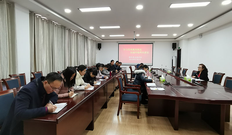 全體專兼職教師在系黨總支書記晏素珍同志的帶領(lǐng)下,共同學(xué)習(xí)了“全國(guó)優(yōu)秀教師”李德威同志的先進(jìn)事跡、《新時(shí)代高校教師職業(yè)行為十項(xiàng)準(zhǔn)則》和《高校教師師德失范行為處理的指導(dǎo)意見(jiàn)》。