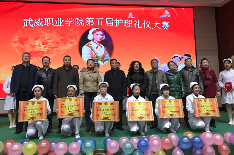 為弘揚南丁格爾精神,強化護生禮儀修養(yǎng),推進護理專業(yè)深層次內(nèi)涵式發(fā)展,助推我市文明城市建設(shè),12月21日,在大學(xué)生活動中心菁英廳舉辦了“武威職業(yè)學(xué)院第五屆護理禮儀大賽”。學(xué)院黨委書記、院長趙明、學(xué)院副院長田迎春、院工會主席金玉龍、教務(wù)處處長仲生仁、學(xué)生工作處處長王守云、招生就業(yè)處處長蔡柱山、科研處處長張玉琴、圖書館館長黃雪梅、電子信息黨總支書記袁青年應(yīng)邀出席本次活動,護理系300多名師生觀看了本次比賽。
