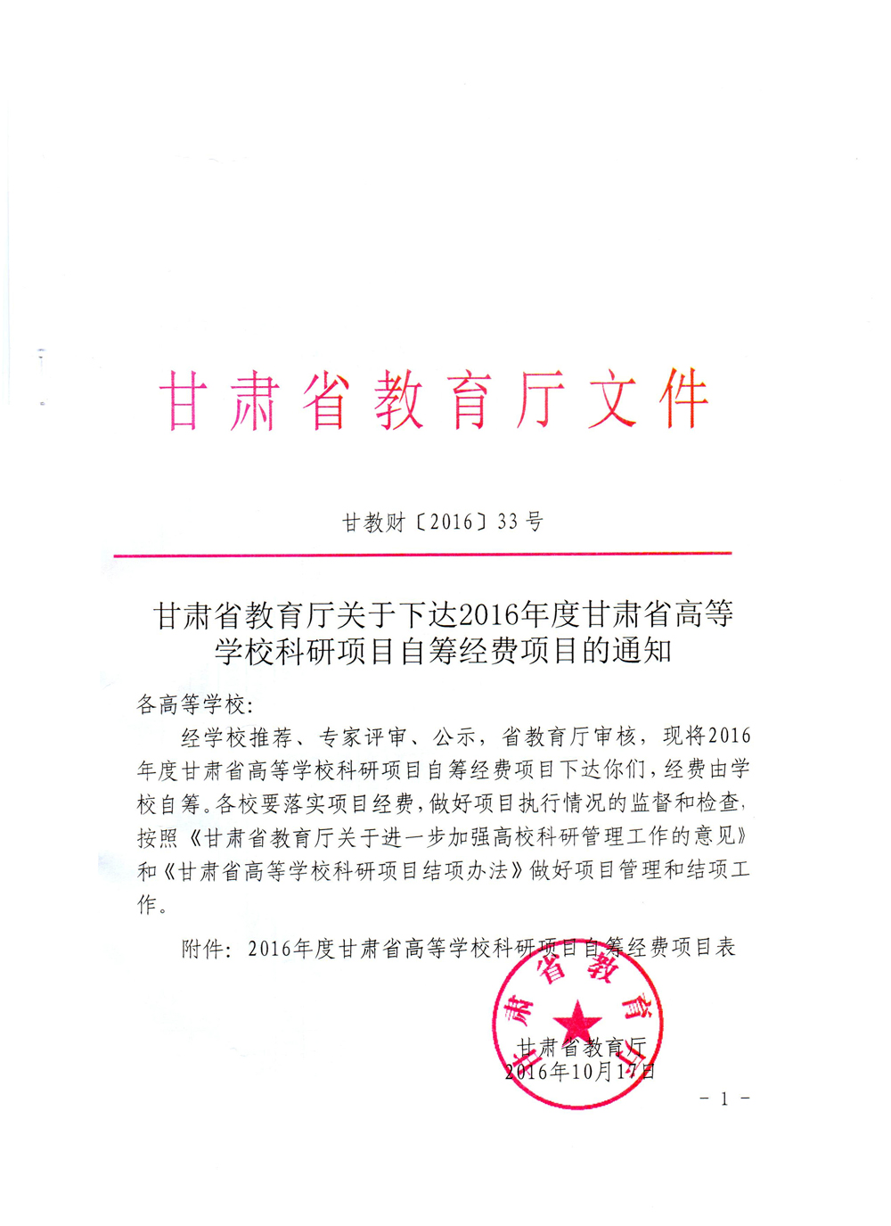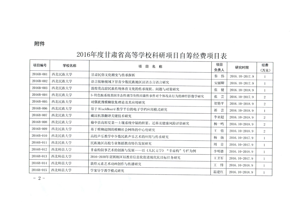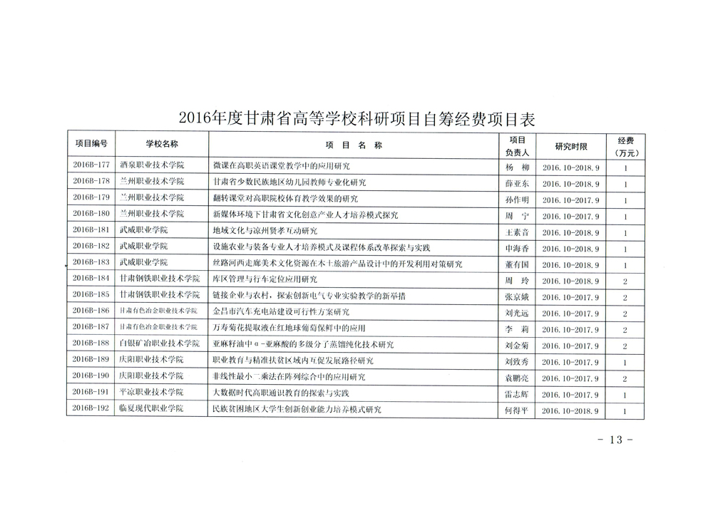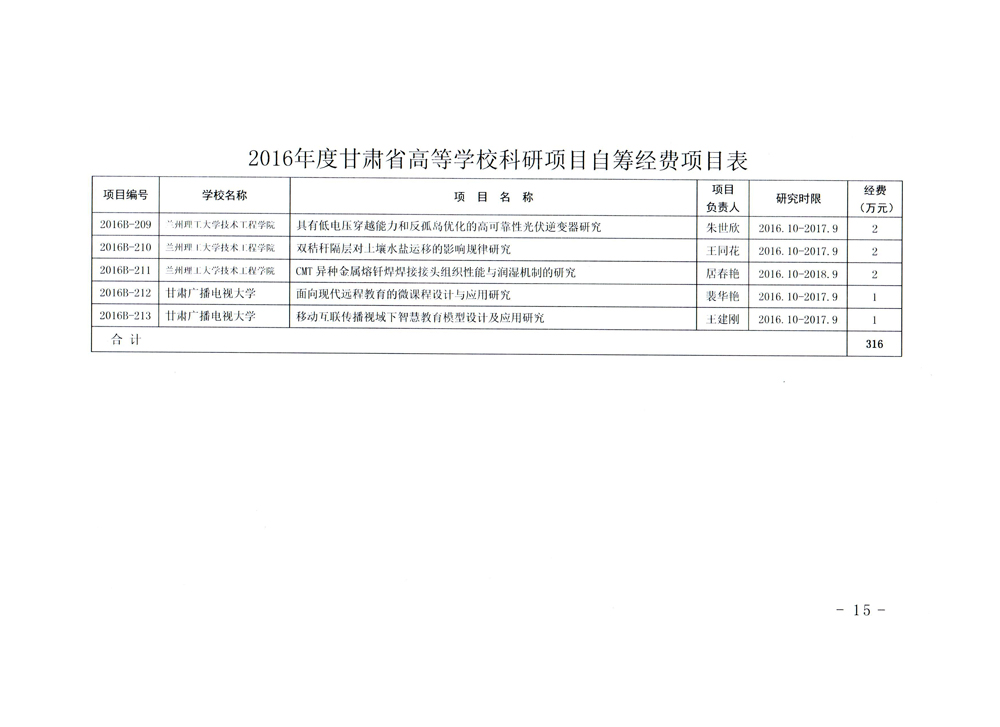 轉(zhuǎn)發(fā)甘肅省財(cái)政廳 教育廳文件 關(guān)于下達(dá)2016年度甘肅省高等學(xué)??蒲许?xiàng)目自籌經(jīng)費(fèi)項(xiàng)目的通知
