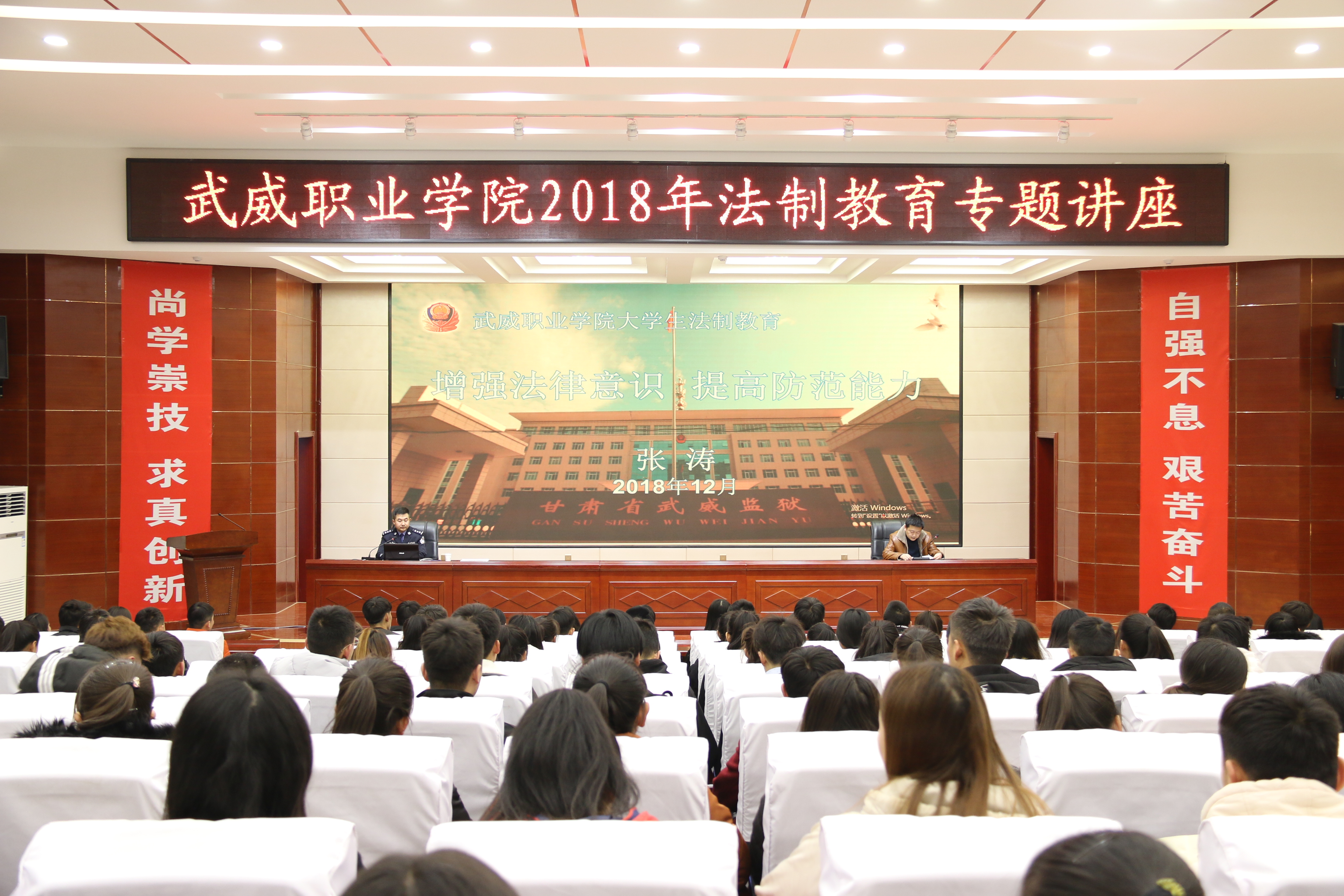講座邀請(qǐng)了甘肅省武威監(jiān)獄第七監(jiān)區(qū)副監(jiān)區(qū)長(zhǎng)張濤警官主講。講座采取以案說(shuō)法、以案學(xué)法、以法警示的方式,圍繞校園欺凌、網(wǎng)絡(luò)詐騙、校園貸等熱點(diǎn)問(wèn)題,分析了目前青少年違法犯罪的現(xiàn)狀,闡釋了法律對(duì)于維護(hù)社會(huì)秩序、影響人們生活的重要性,深入淺出地講解了大學(xué)生應(yīng)該如何遵紀(jì)守法、如何預(yù)防犯罪、如何防止不法侵害、打擊犯罪及自我防范的一些基本方法,教導(dǎo)同學(xué)們要增強(qiáng)法律意識(shí),提高防范能力,做一名知法、懂法、守法、用法的合格公民。
