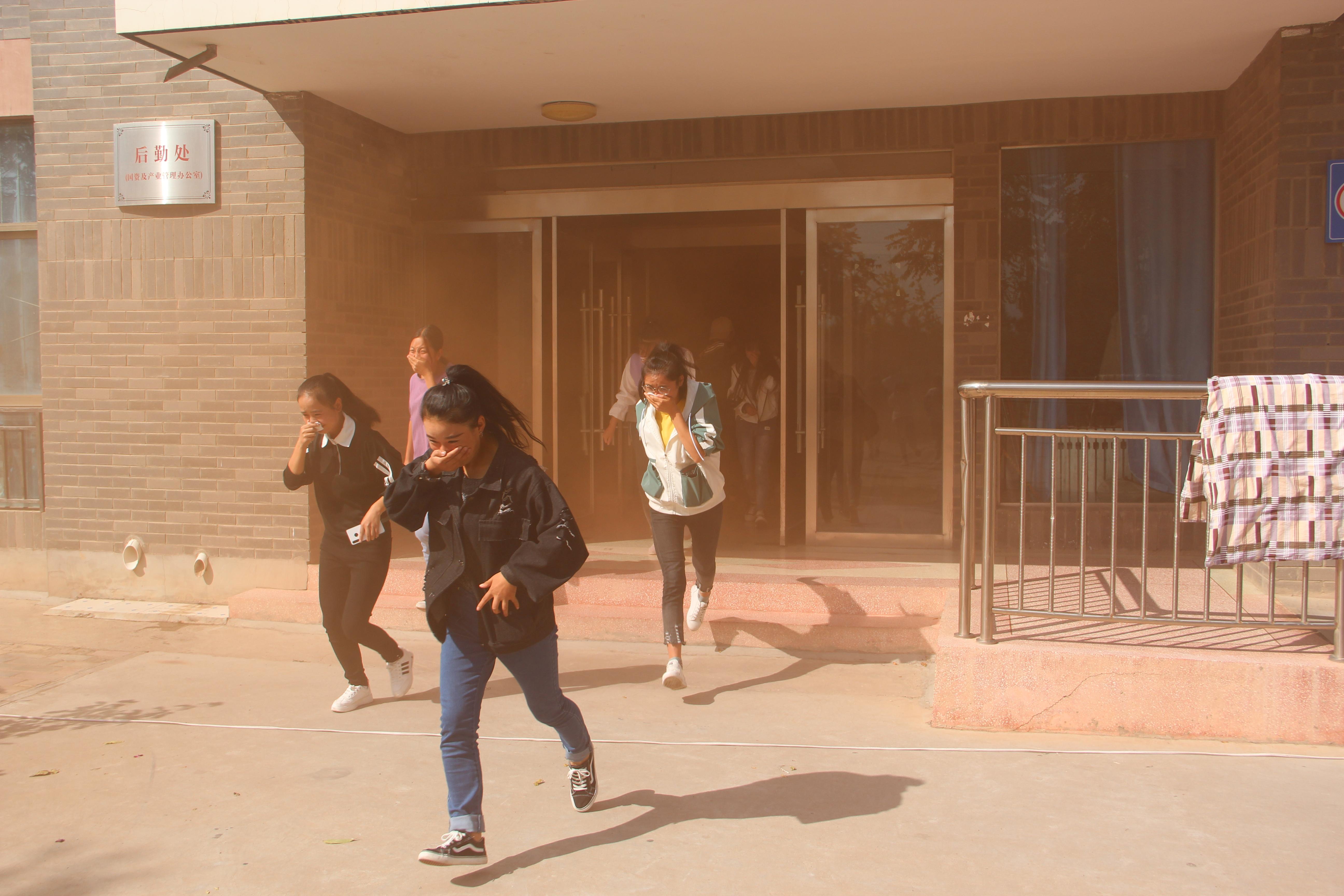 15時10分,疏散演練正式開始。隨著火災(zāi)警報響起,學(xué)生公寓樓冒出滾滾濃煙,公寓管理人員迅速打開所有應(yīng)急疏散通道,組織學(xué)生有序疏散。在安保人員的協(xié)助下,同學(xué)們用濕毛巾捂住口鼻,快速、有序從疏散通道撤離到了安全地帶。