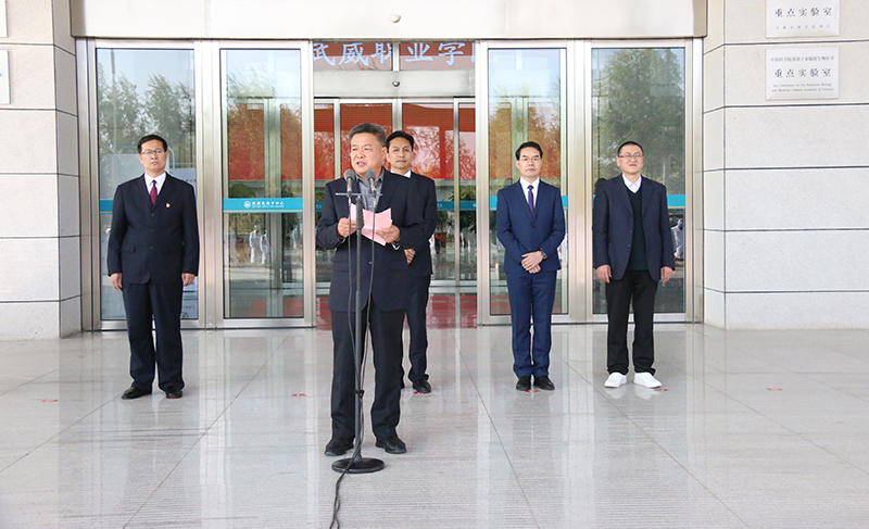 揭牌儀式上,趙明介紹學(xué)院教育教學(xué)改革發(fā)展所取得的成效,強(qiáng)調(diào)職業(yè)教育和普通教育是兩種不同的教育類型,具有同等重要地位,全面落實(shí)《國家職業(yè)教育改革實(shí)施方案》和“技能甘肅”部署要求,推動(dòng)學(xué)院“雙高”建設(shè),爭創(chuàng)高職應(yīng)用型本科院校,離不開高水平的合作醫(yī)院,離不開高水平的師資隊(duì)伍。教師實(shí)踐基地的揭牌成立,將會(huì)進(jìn)一步加強(qiáng)雙方的合作交流,實(shí)現(xiàn)資源共享、優(yōu)勢互補(bǔ)、共同發(fā)展,我們要積極探索和創(chuàng)新基地育人方式,使之成為“雙師型”教師培養(yǎng)的搖籃。