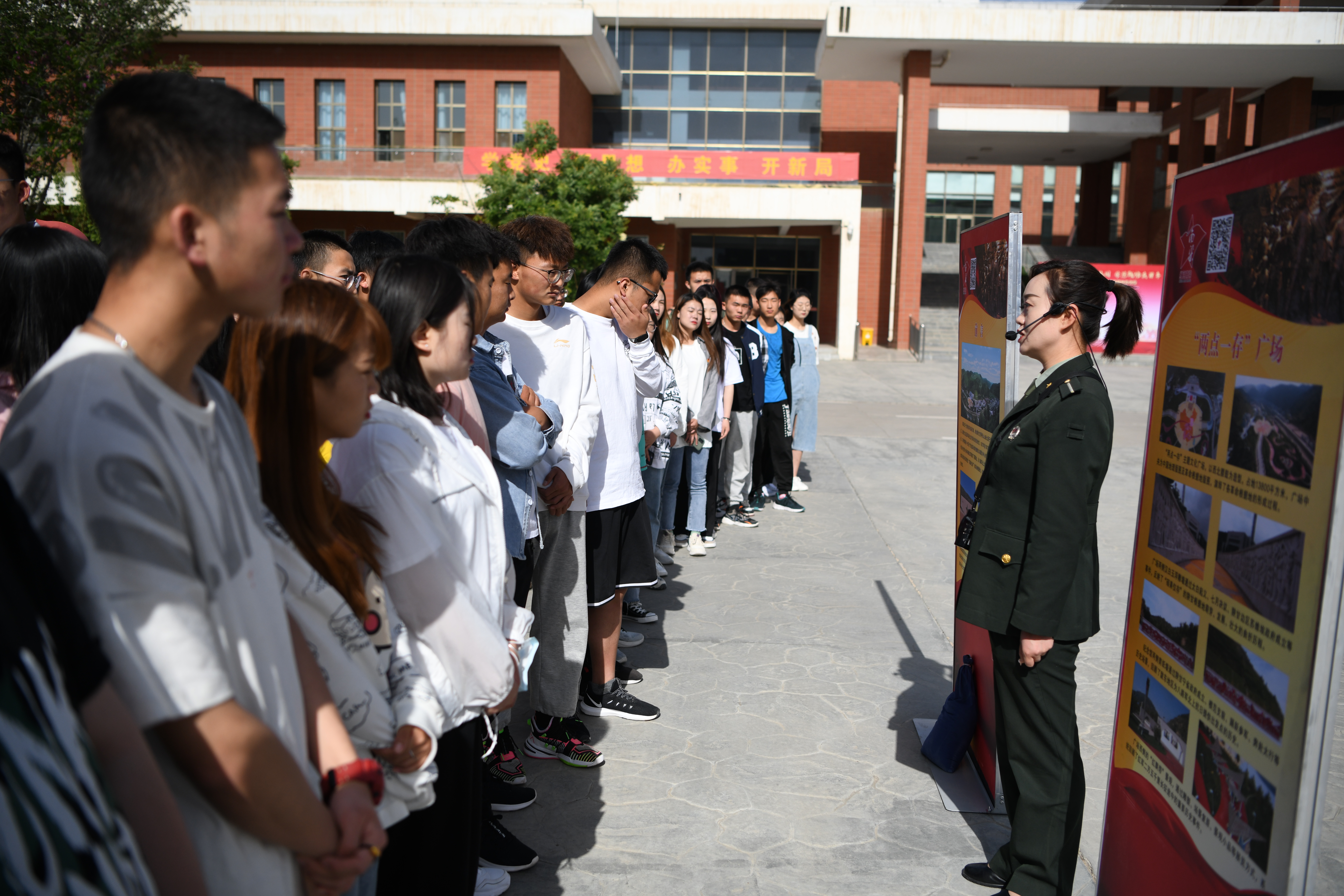 與此同時,“講好南梁故事·永遠跟黨走”主題展覽在大學(xué)生活動中心前廣場開展,師生聆聽了南梁革命紀念館講解員的生動講解,全面了解了劉志丹、謝子長、習(xí)仲勛等老一輩無產(chǎn)階級革命家在陜甘地區(qū)高舉旗幟,創(chuàng)建以南梁為中心的陜甘革命根據(jù)地,積極探索救國救民的道路的光輝事跡和偉大精神。師生們紛紛表示要以革命先烈為榜樣,不忘初心,牢記使命,學(xué)習(xí)傳承老一輩無產(chǎn)階級革命家的革命精神,爭做傳承和弘揚南梁精神的踐行者。