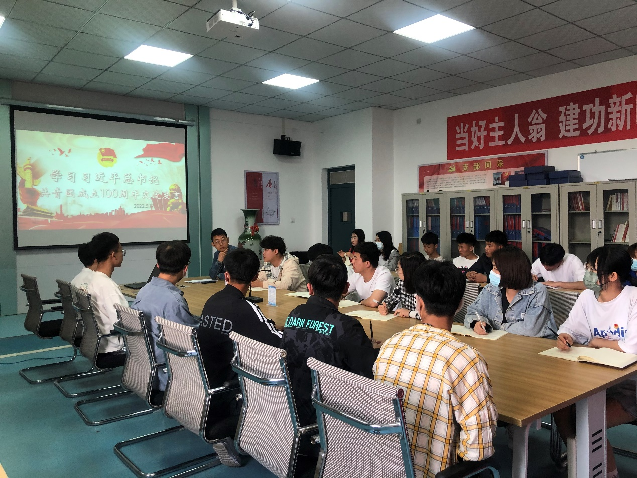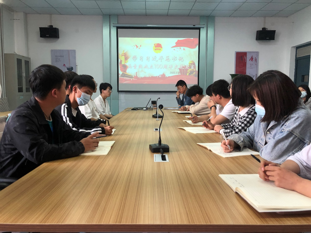 ? ?會上,院團(tuán)委成員和各團(tuán)支部書記就學(xué)習(xí)習(xí)近平總書記在慶祝中國共青團(tuán)成立100周年大會上的重要講話精神,立足工作崗位、結(jié)合思想體悟,從不同層面,不同角度作交流發(fā)言。