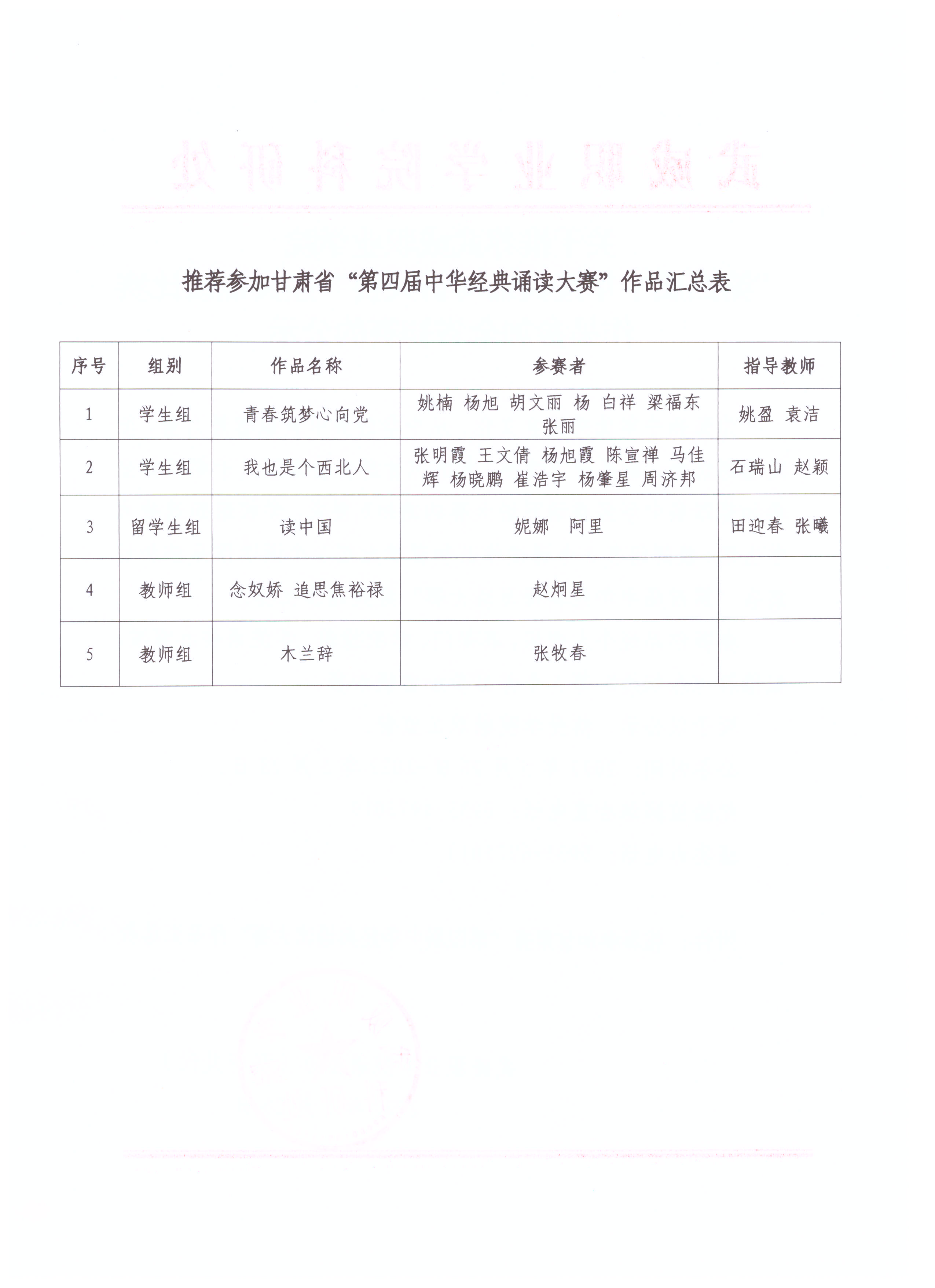 關(guān)于推薦武威職業(yè)學(xué)院“第四屆中華經(jīng)典誦寫(xiě)講大賽”經(jīng)典誦讀比賽作品參加全省初賽的公示