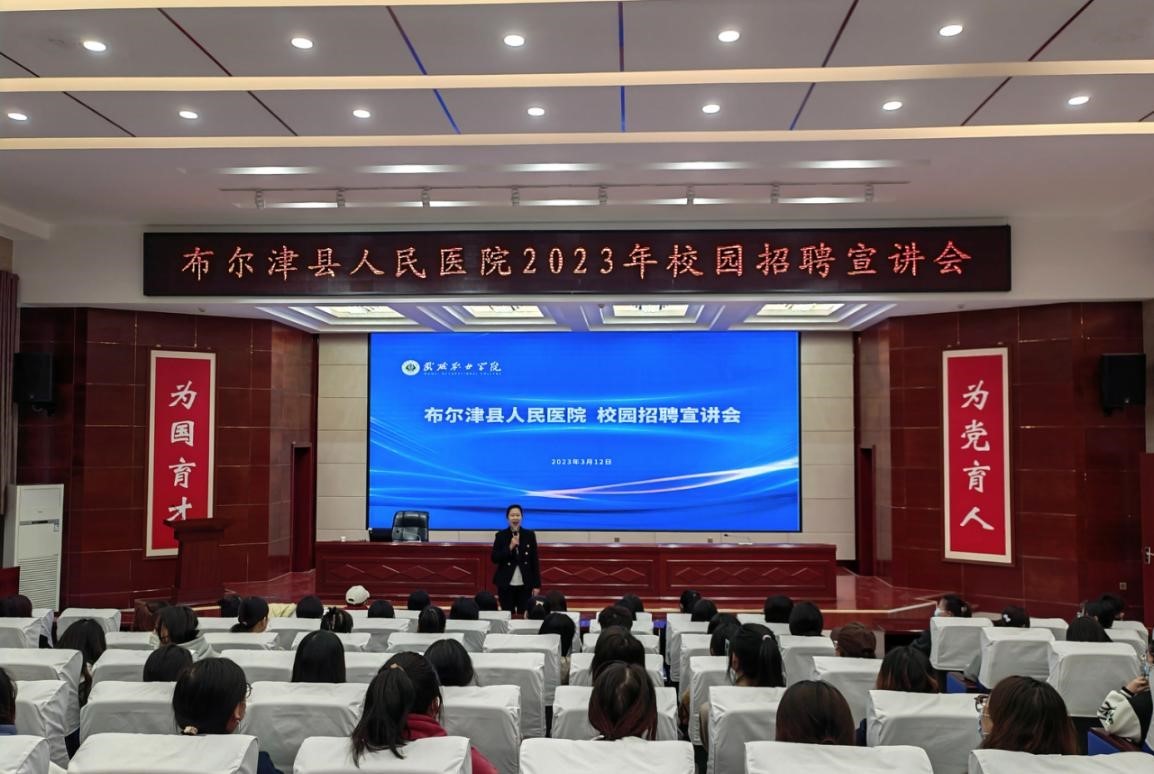 3月12日簽約儀式結束后,布爾津縣人民醫(yī)院黨委書記李娟在學生發(fā)展中心舉行了校園招聘宣講活動,護理學院約200名師生參加,部分學生現(xiàn)場達成實習就業(yè)意向。