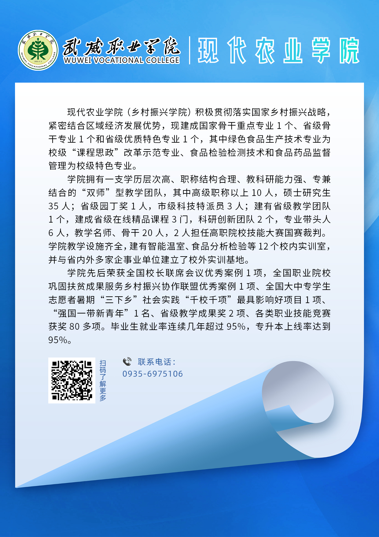 武威職業(yè)學(xué)院二級(jí)學(xué)院專業(yè)簡(jiǎn)介丨現(xiàn)代農(nóng)業(yè)學(xué)院