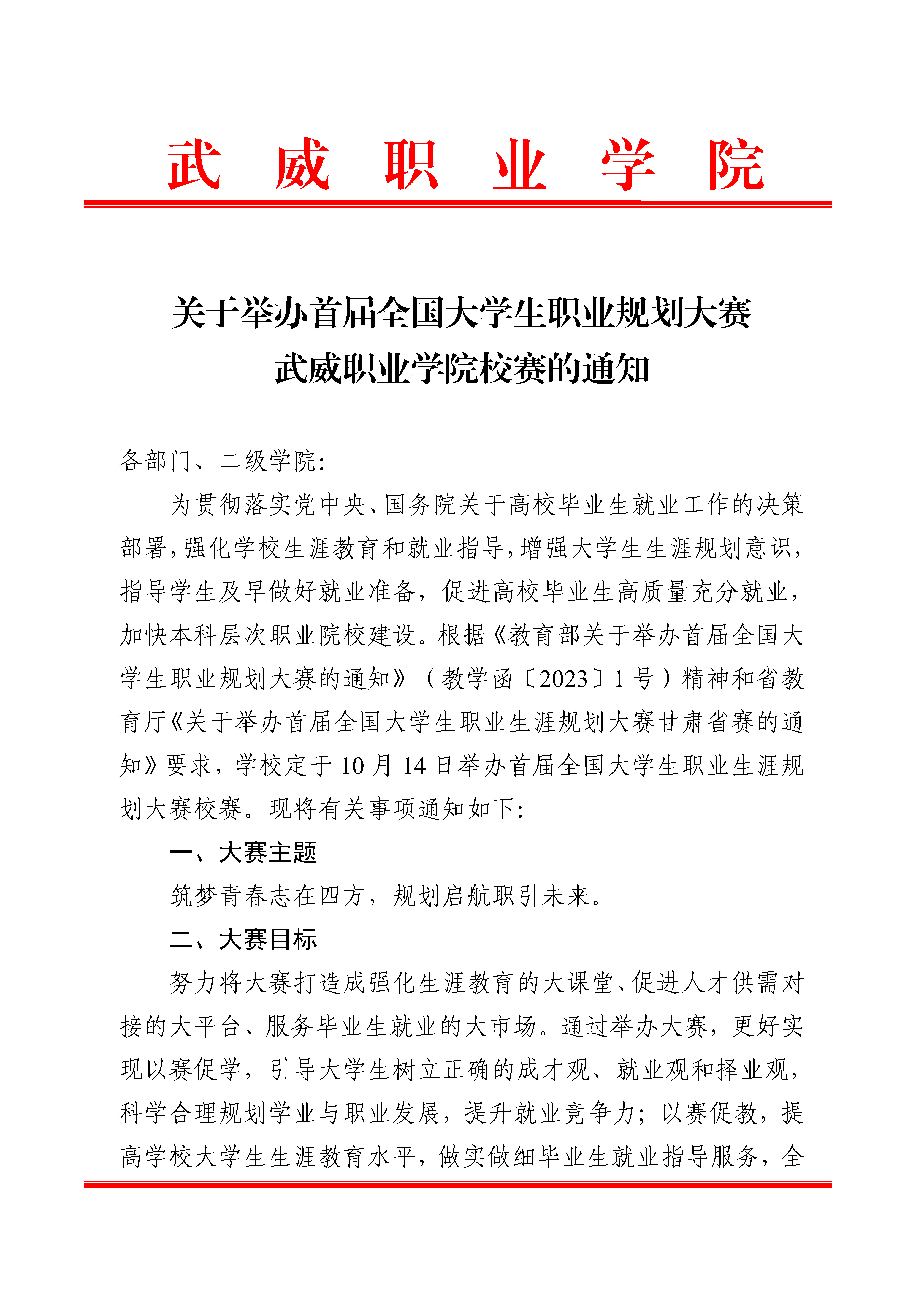 關于舉辦首屆全國大學生職業(yè)規(guī)劃大賽 武威職…