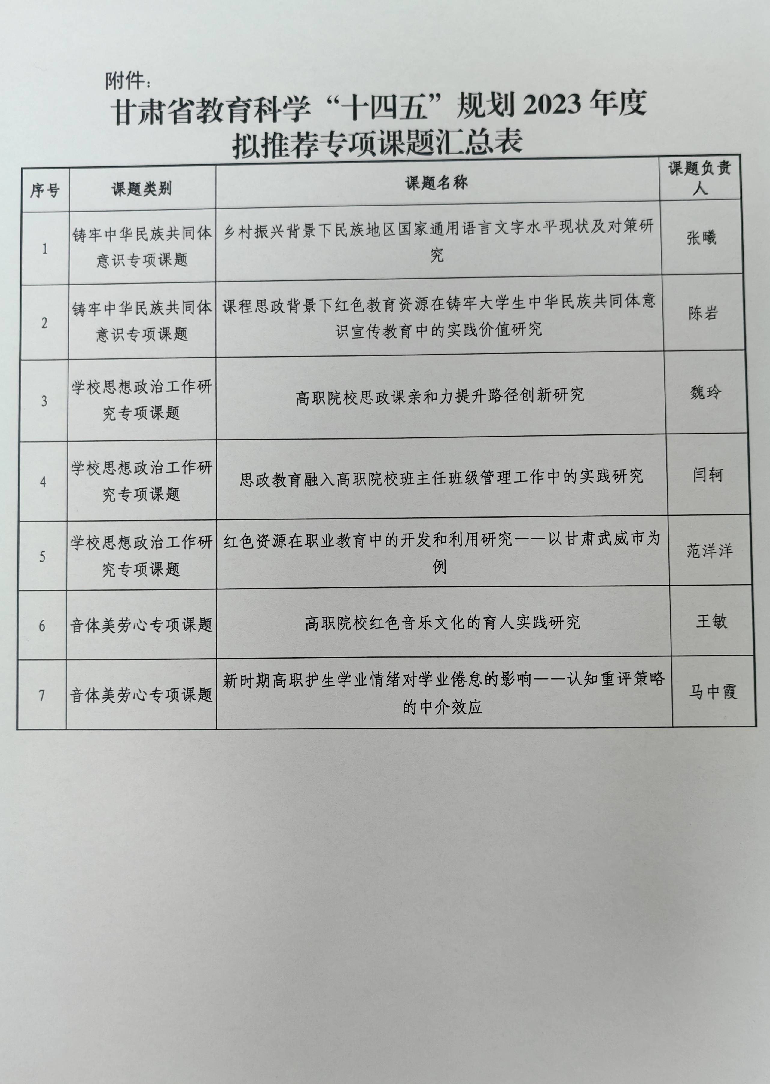 關(guān)于擬推薦甘肅省教育科學(xué)“十四五”規(guī)劃2023年度專項課題名單的公示