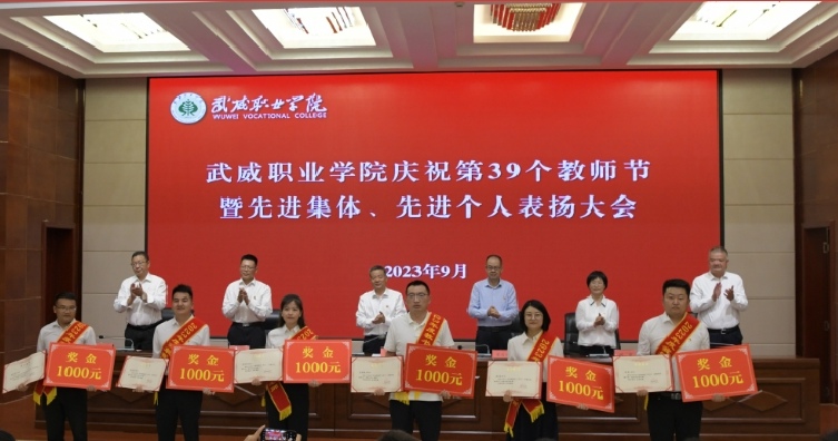 9月8日上午,在第39個(gè)教師節(jié)即將來臨之際,武威職業(yè)學(xué)院慶祝2023年教師節(jié)暨先進(jìn)集體和先進(jìn)個(gè)人表?yè)P(yáng)大會(huì)在菁英廳隆重舉行。學(xué)院黨委書記、校長(zhǎng)趙明主持會(huì)議并講話,在家領(lǐng)導(dǎo)班子成員出席會(huì)議,中層管理干部、受表?yè)P(yáng)的教師和師生代表參加會(huì)議。