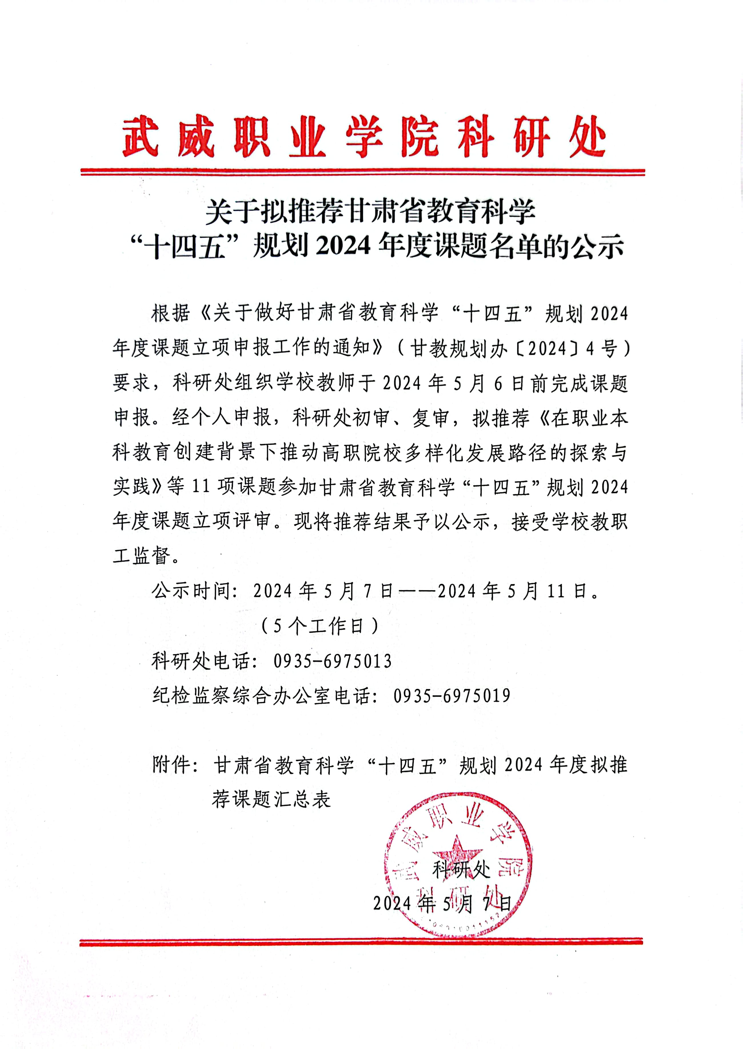 關(guān)于擬推薦甘肅省教育科學(xué)“十四五”規(guī)劃2024年度課題名單的公示