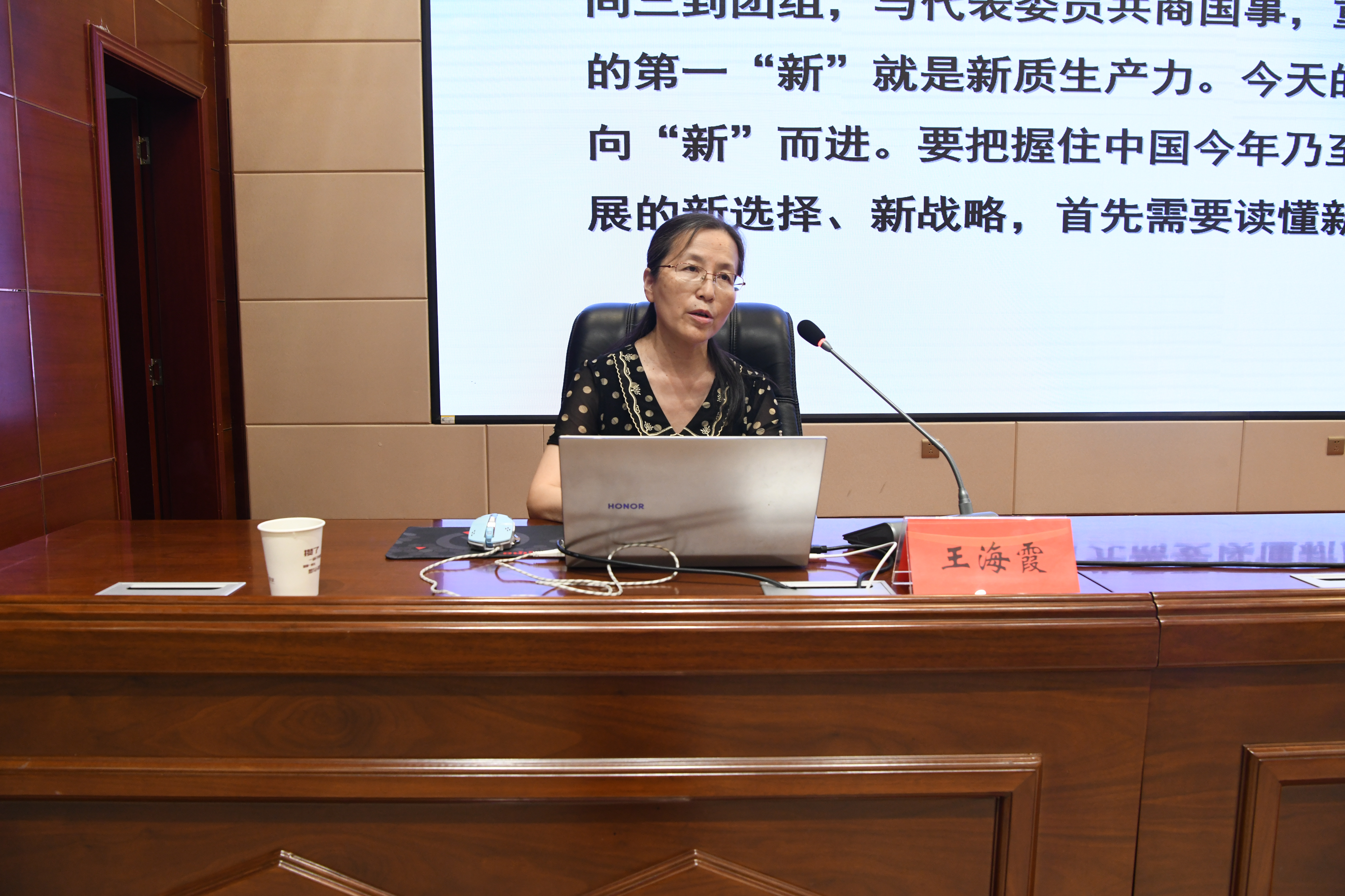 王海霞教授以《新質(zhì)生產(chǎn)力的內(nèi)涵要義、發(fā)展要求和發(fā)展重點》為題,通過多個鮮活的案例深入闡釋了新質(zhì)生產(chǎn)力的理論內(nèi)涵及核心要義,緊扣社會熱點,將理論轉(zhuǎn)化為知識點,為我們帶來很多啟發(fā)。