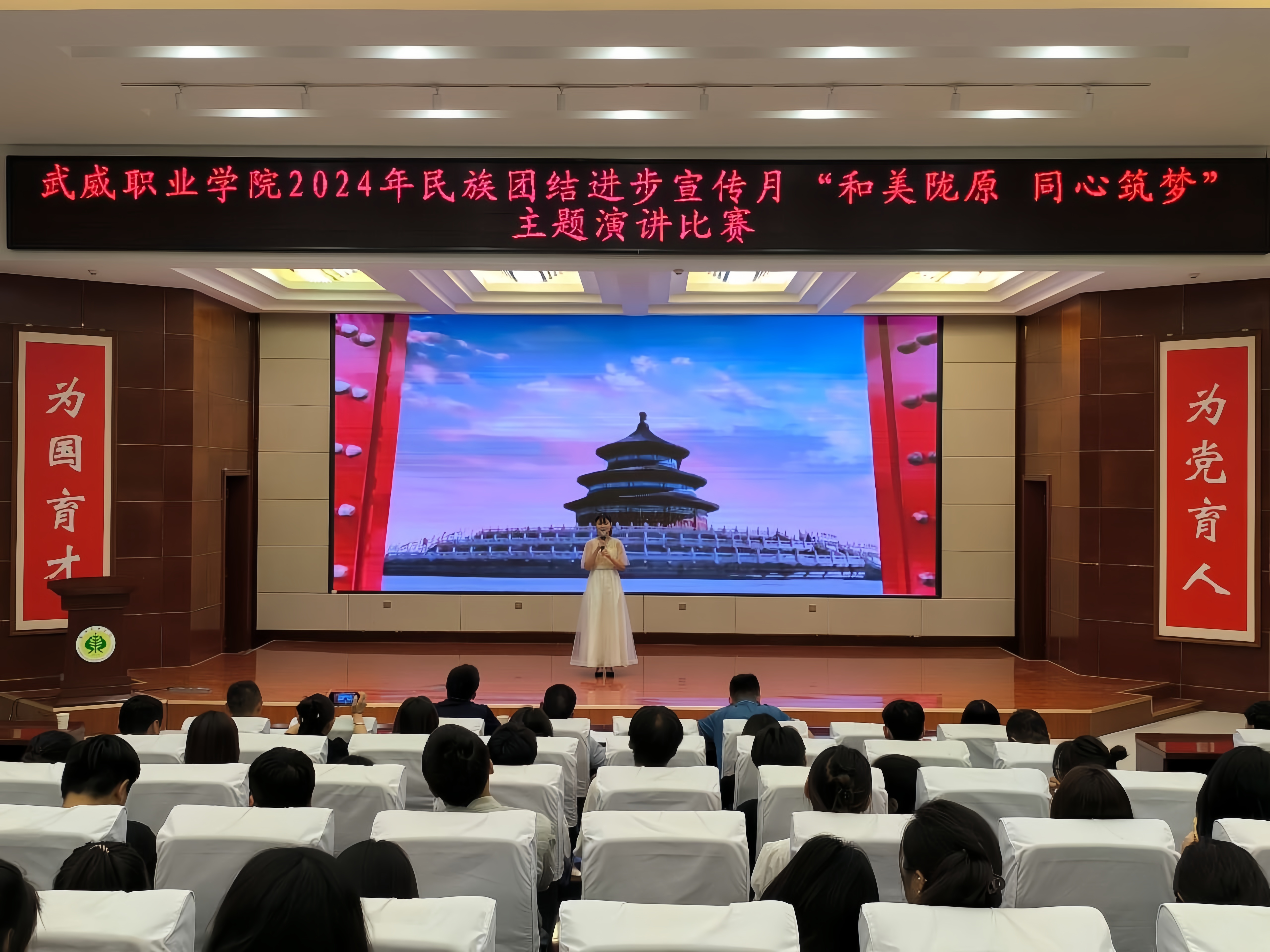 為持續(xù)深化民族團結進步教育,進一步引導各族師生牢固樹立“四個與共”的共同體理念。學校于5月30日晚在學生發(fā)展中心菁英廳舉辦了“和美隴原 同心筑夢”主題演講比賽。200余名師生參加活動。
