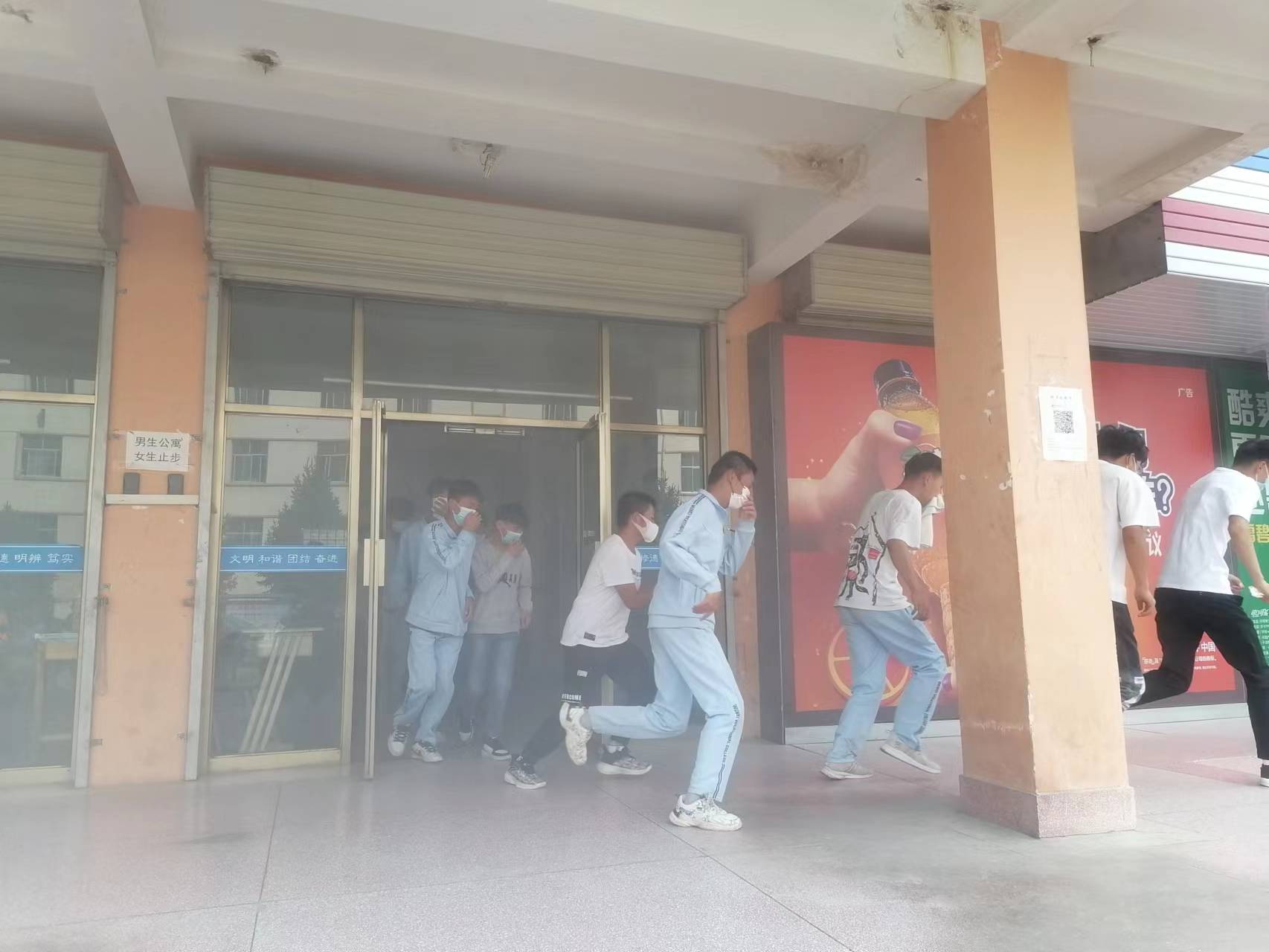 15時(shí)20分,疏散演練正式開(kāi)始。隨著火災(zāi)警報(bào)響起,安全保衛(wèi)工作人員點(diǎn)燃煙餅,在學(xué)生公寓樓模擬火災(zāi)現(xiàn)場(chǎng),冒出滾滾濃煙,公寓管理人員迅速組織學(xué)生有序疏散。在輔導(dǎo)員、班主任的引導(dǎo)下,同學(xué)們按照動(dòng)作要領(lǐng),用濕毛巾捂住口鼻,俯身彎腰按照安全出口指示牌快速、有序從疏散通道撤離到體育場(chǎng),整個(gè)過(guò)程緊張有序,實(shí)用性強(qiáng),達(dá)到了預(yù)期效果。