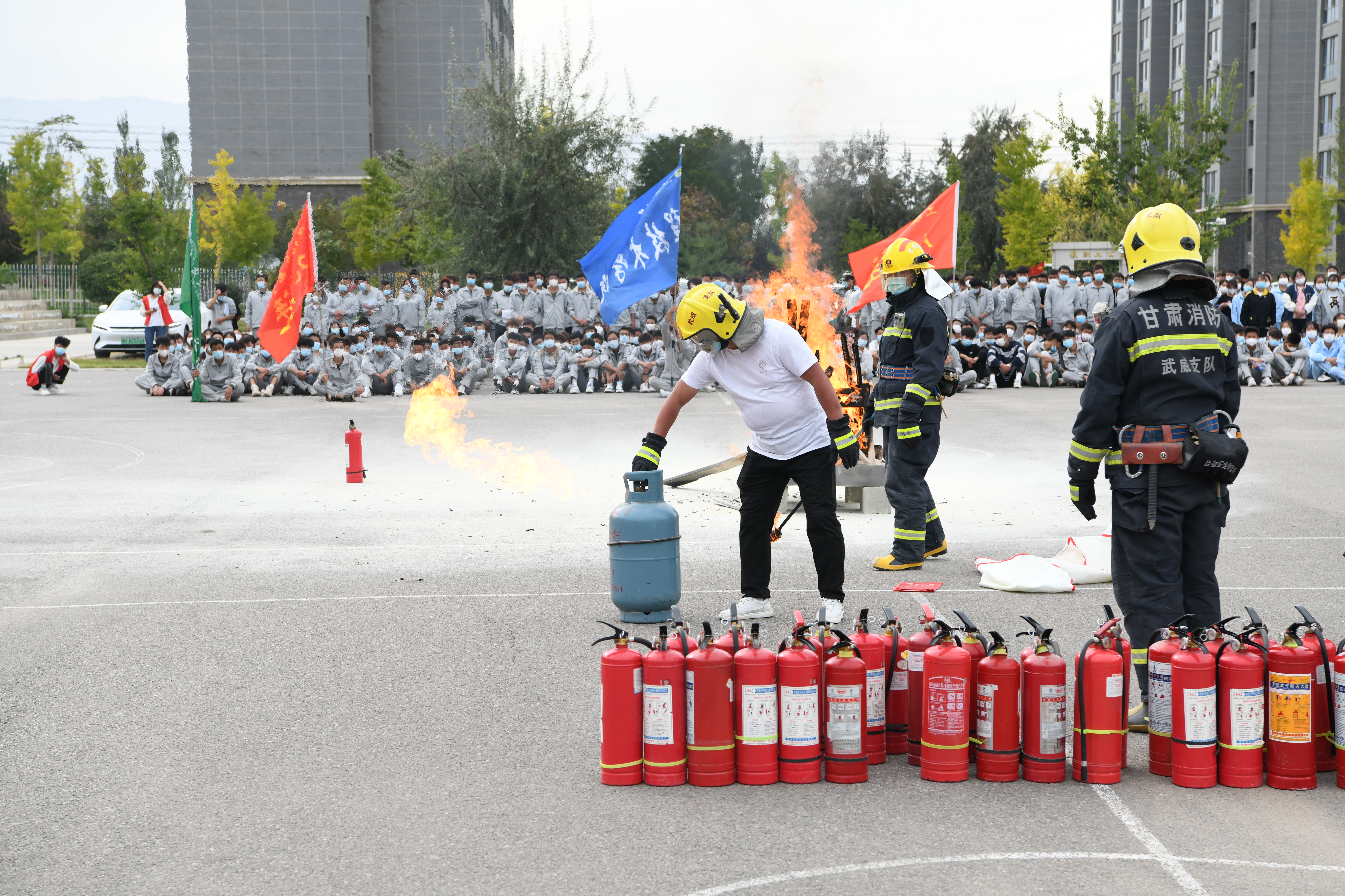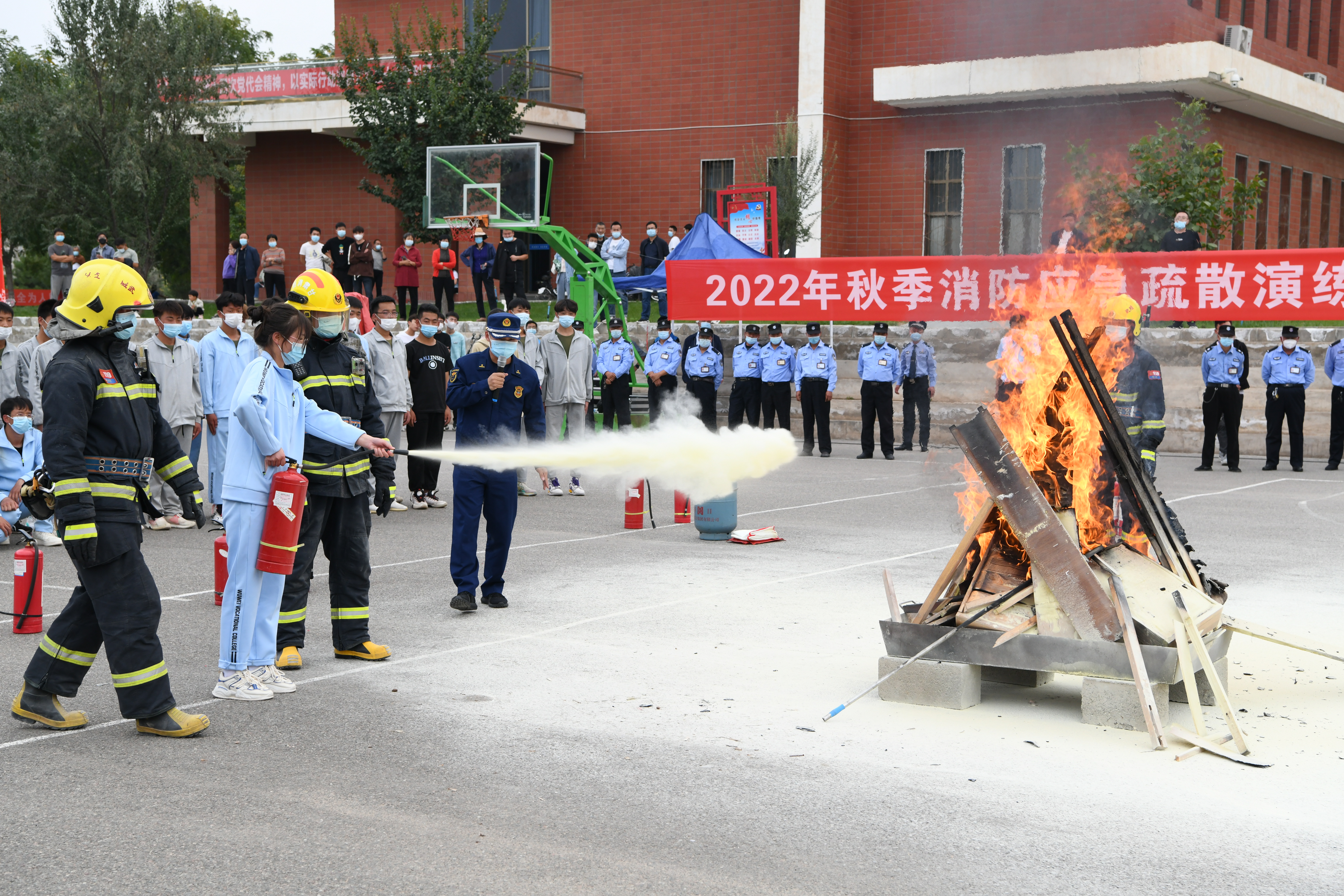 9月30日,學(xué)校聯(lián)合武威市消防救援支隊(duì)舉行了2022年秋季消防應(yīng)急疏散暨滅火演練活動(dòng)。學(xué)校副校長(zhǎng)王守云、武威市消防救援支隊(duì)涼都特勤站副站長(zhǎng)張旭出席活動(dòng),安全保衛(wèi)處、學(xué)生工作處、各二級(jí)學(xué)院負(fù)責(zé)人和輔導(dǎo)員、班主任現(xiàn)場(chǎng)觀摩演練,約4200多名2022級(jí)新生參加了演練。