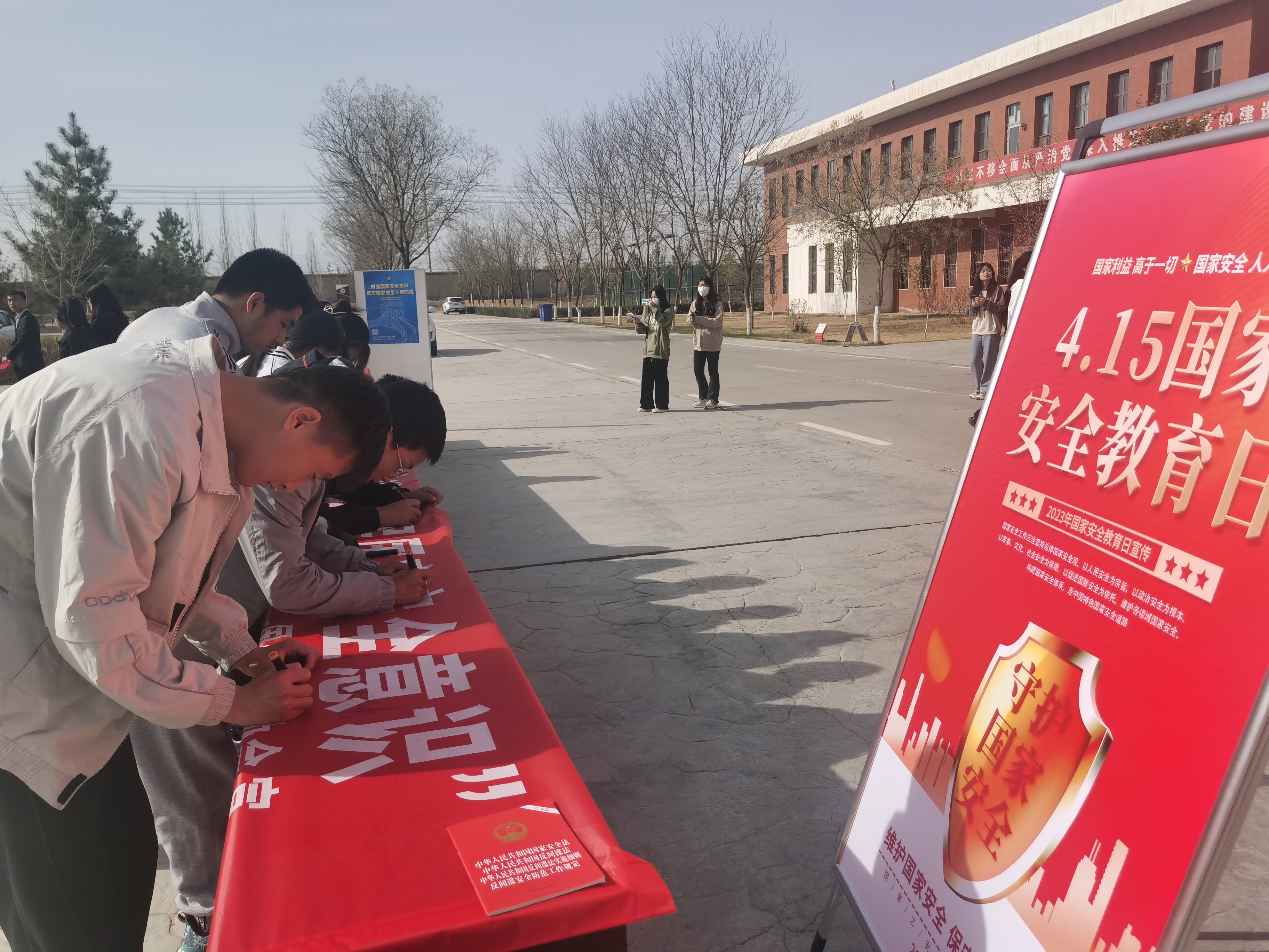 4月15日,學(xué)校在學(xué)生發(fā)展中心組織開(kāi)展了2023年全民國(guó)家安全教育日集中宣傳教育活動(dòng),500多名師生代表參加了活動(dòng)?;顒?dòng)中,通過(guò)懸掛橫幅、張貼海報(bào)、瀏覽展板、發(fā)放宣傳資料、觀看警示教育片、承諾簽名等方式集中開(kāi)展了反邪教、反恐怖、防間諜等安全知識(shí)及《國(guó)家安全法》《反間諜法》《反恐怖主義法》《網(wǎng)絡(luò)安全法》等相關(guān)法律法規(guī)宣傳,向廣大師生普及了國(guó)家安全相關(guān)法律法規(guī)知識(shí)。