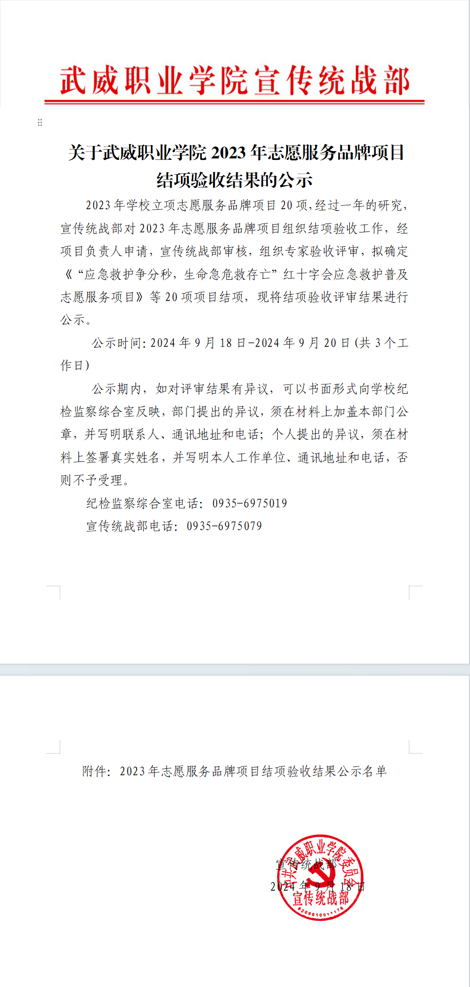 關(guān)于武威職業(yè)學(xué)院2023年志愿服務(wù)品牌項目結(jié)項驗收結(jié)果的公示