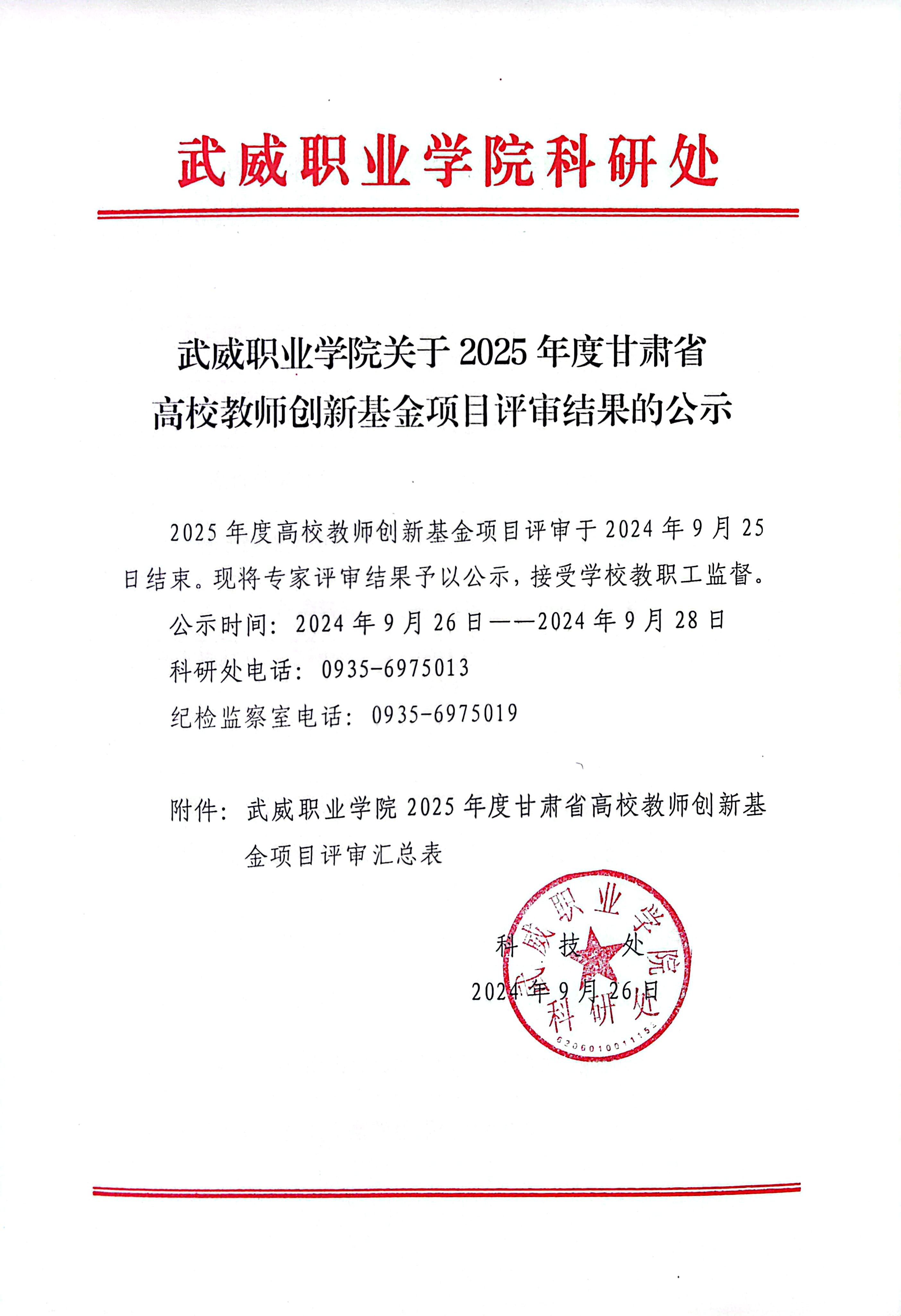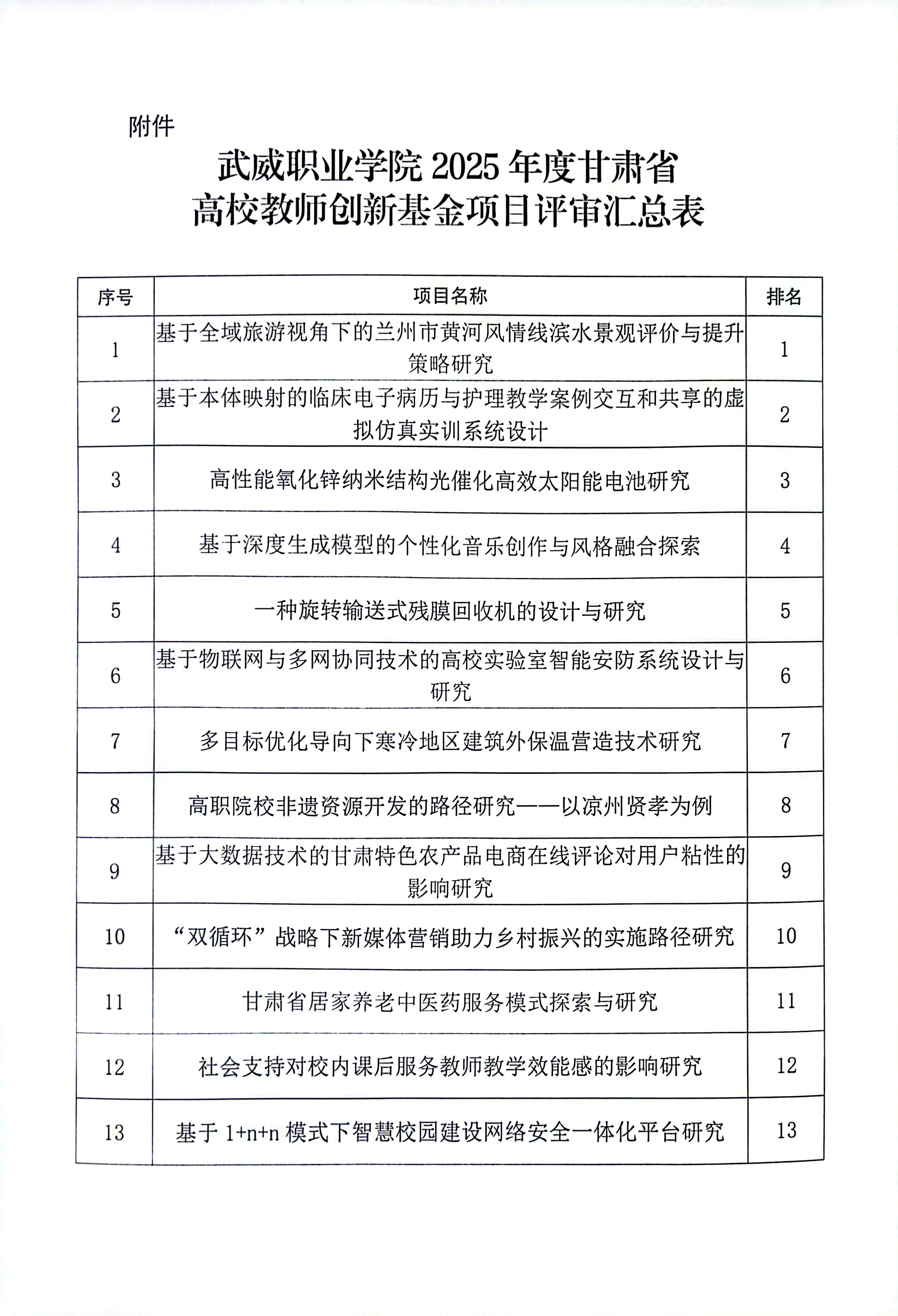 武威職業(yè)學(xué)院關(guān)于2025年度甘肅省高校教師創(chuàng)新基金項目評審結(jié)果的公示