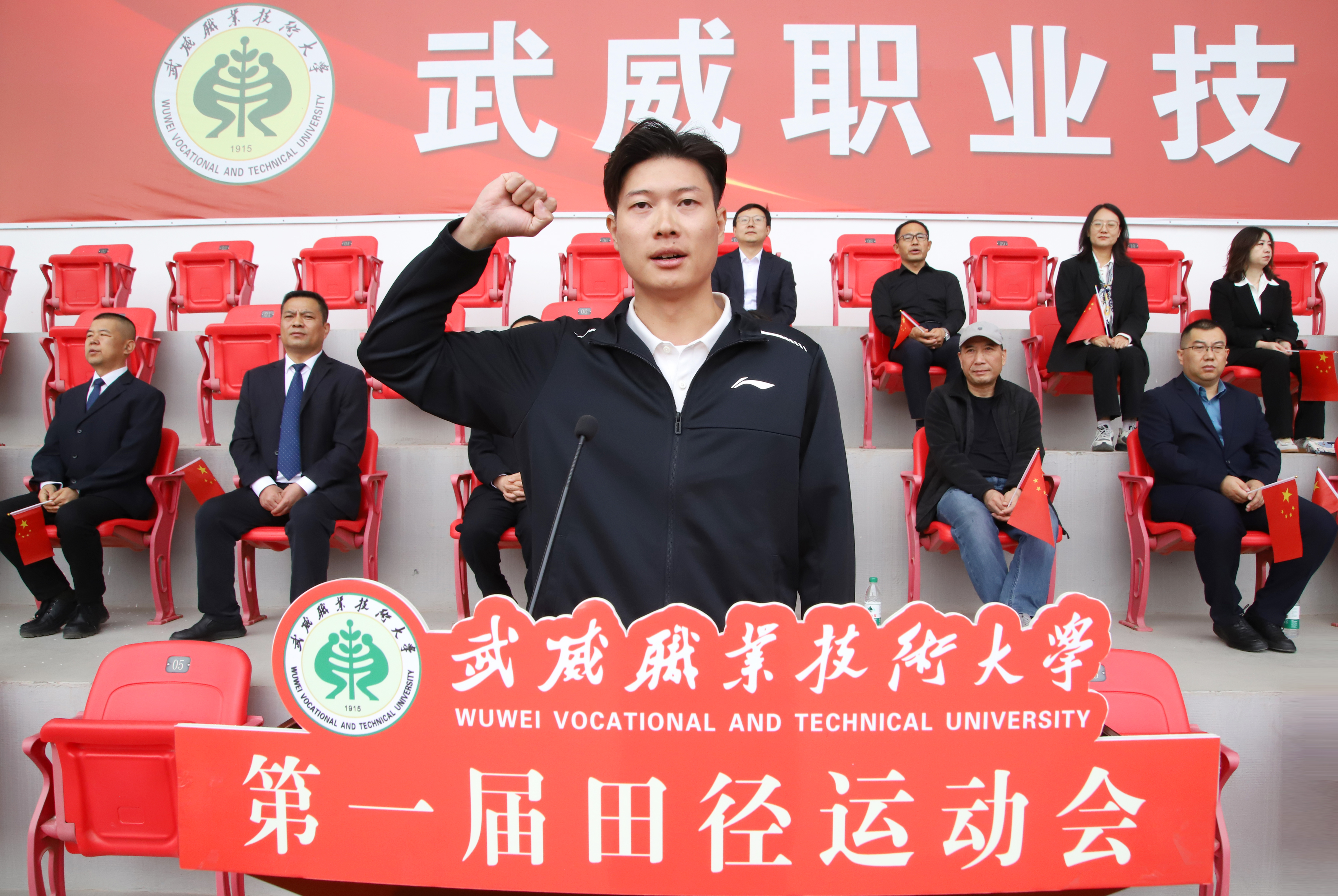 王宏宣布武威職業(yè)技術大學第一屆田徑運動會開幕。