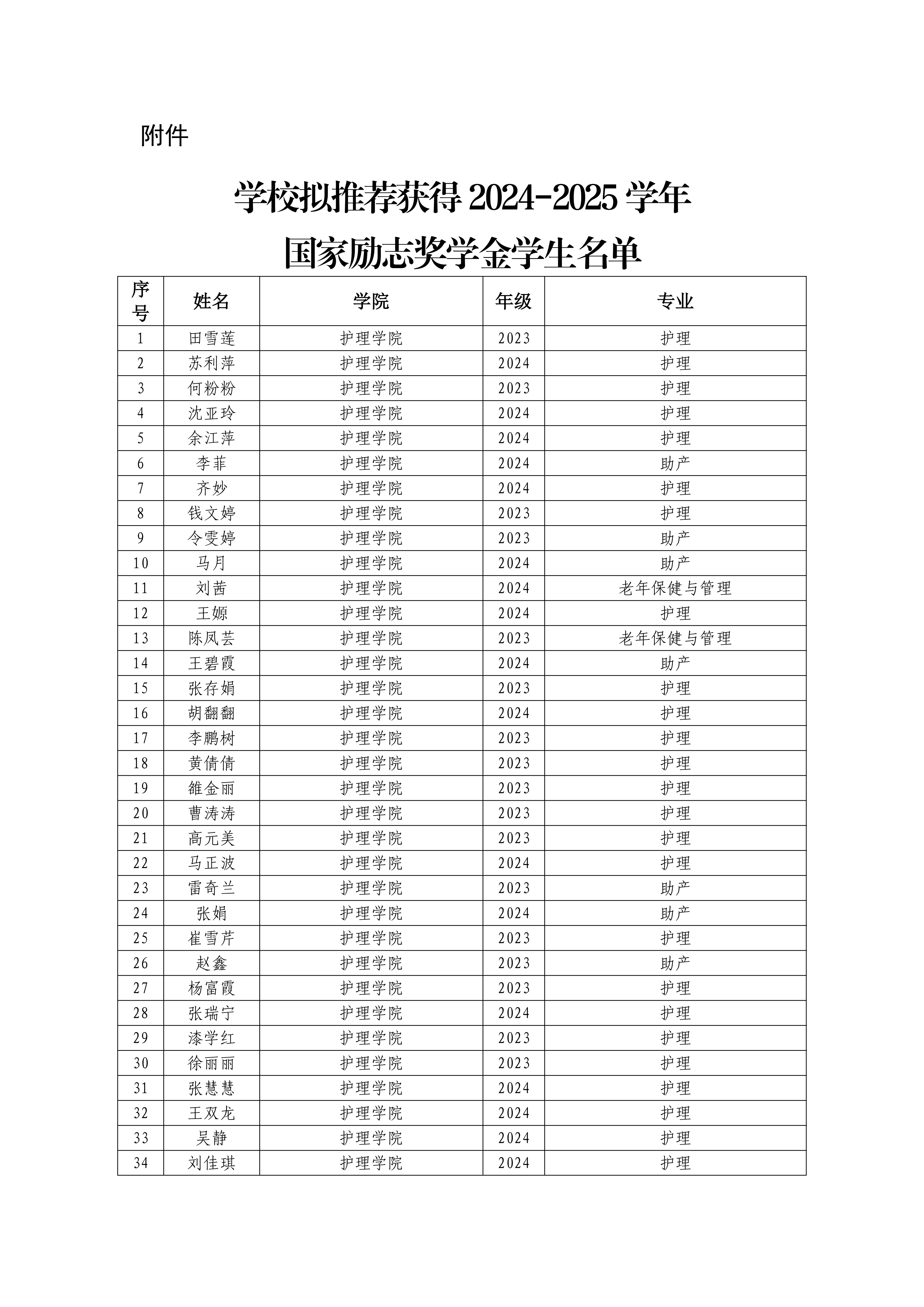 學校關(guān)于推薦獲得2024-2025學年國家勵志獎學金學生名單的公示