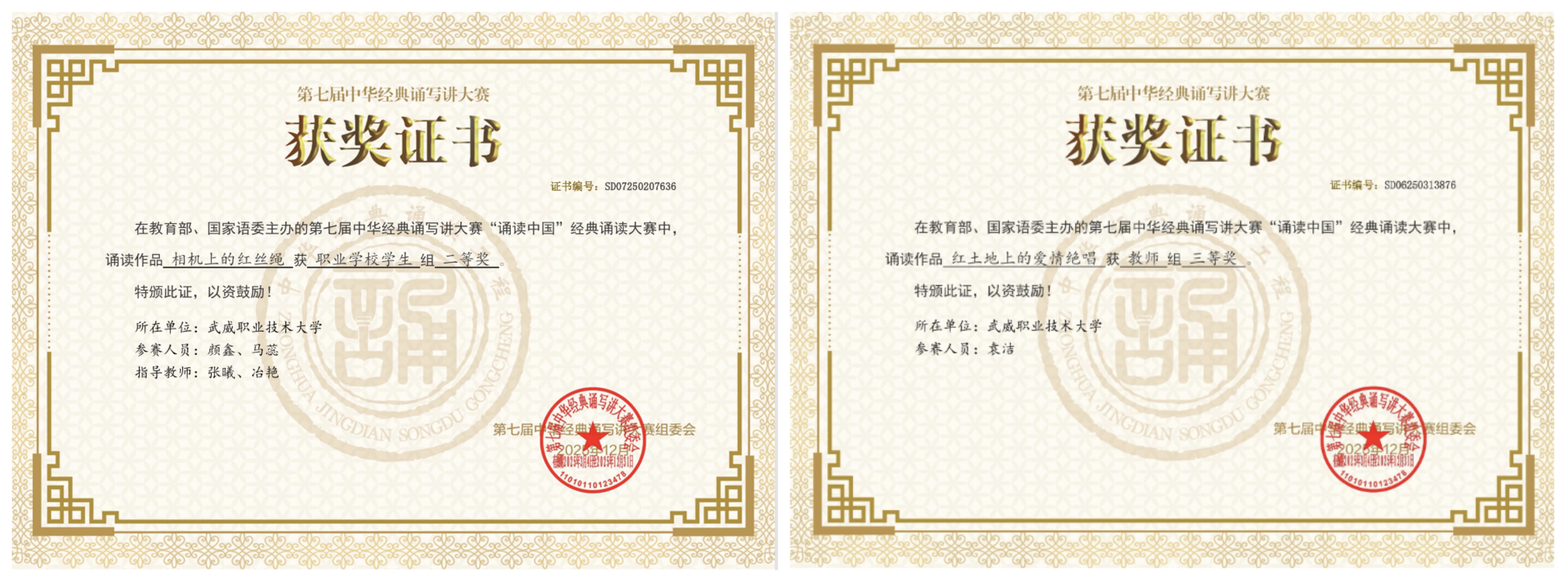 一、學(xué)校師生首次在全國(guó)第七屆經(jīng)典誦寫講大賽中斬獲佳績(jī)