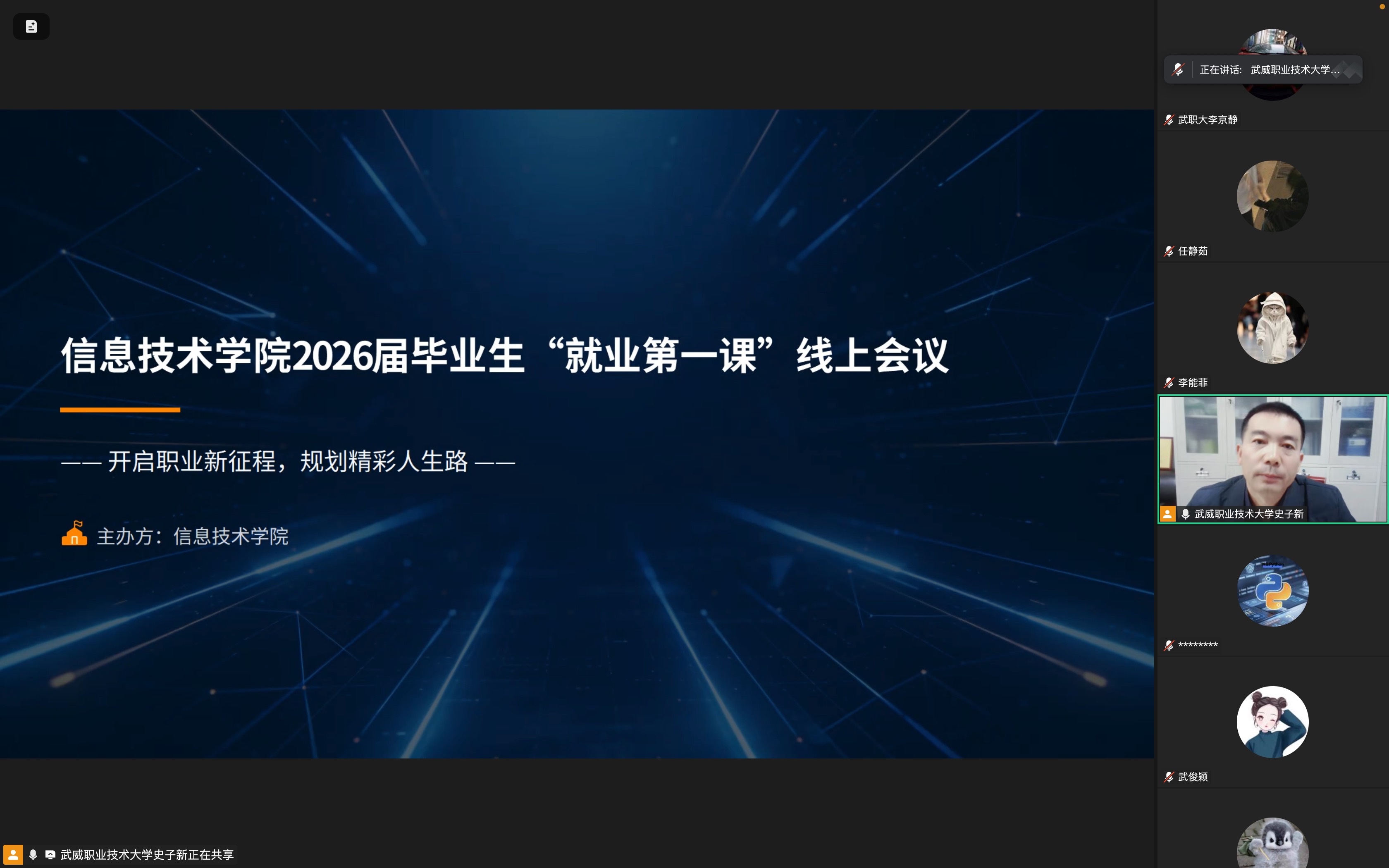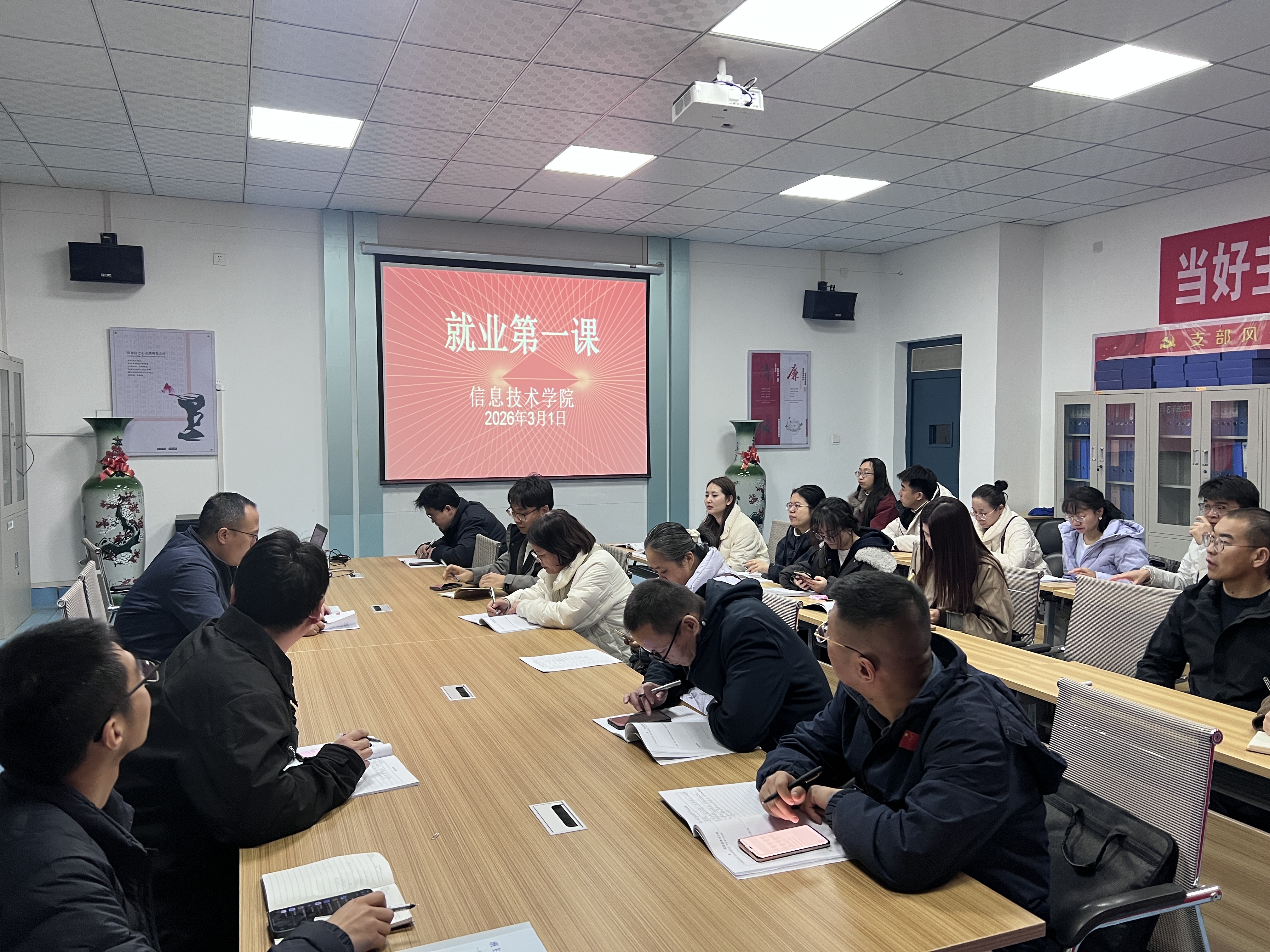 為深入貫徹落實(shí)高?!昂俅倬蜆I(yè)暖心行動”工作要求,切實(shí)做好2026屆畢業(yè)生就業(yè)指導(dǎo)服務(wù),幫助實(shí)習(xí)階段的畢業(yè)生明晰職業(yè)方向、提升求職競爭力,3月5日,信息技術(shù)學(xué)院黨總支書記史子新通過“線下會場+線上同步直播”的形式,為全體2026屆畢業(yè)生及畢業(yè)班班主任開展了題為“開啟職業(yè)新征程,規(guī)劃精彩人生路”的“就業(yè)第一課”專題講座。