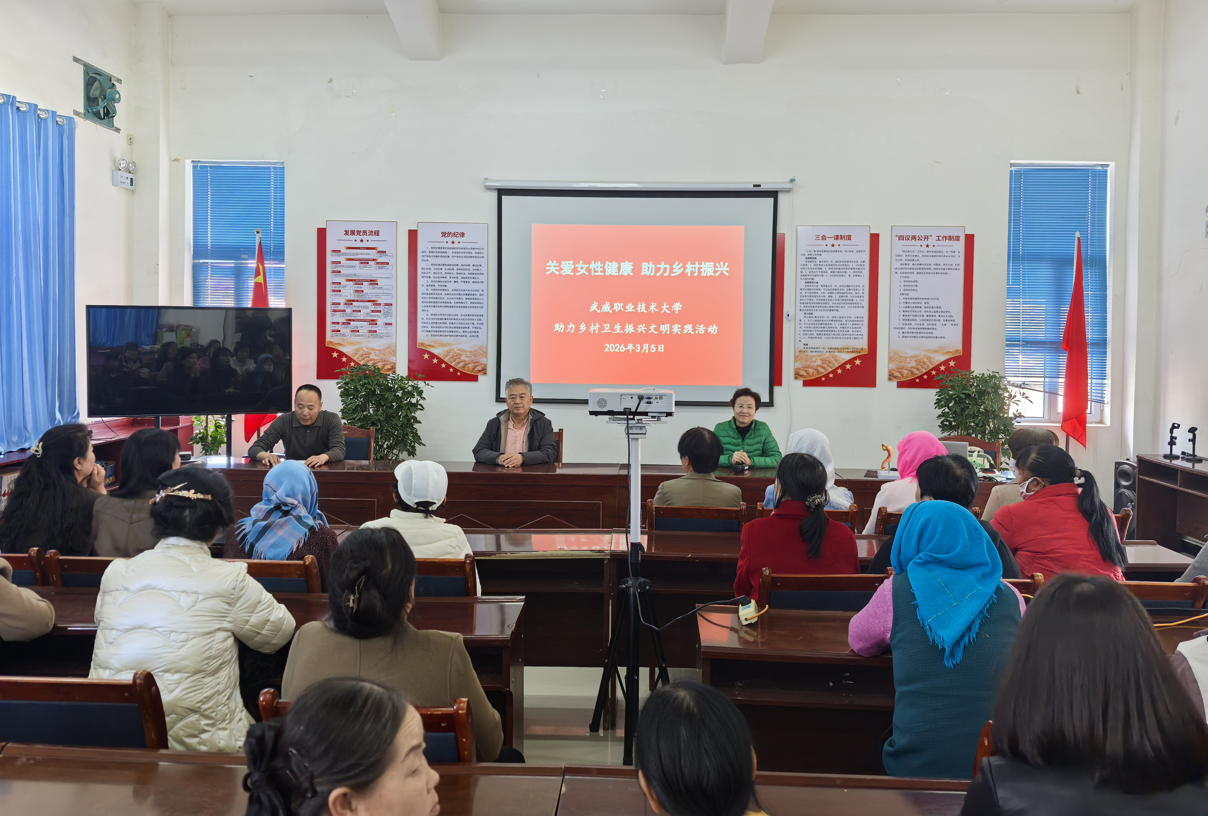 為進一步深化鄉(xiāng)村振興幫扶,促進農(nóng)村衛(wèi)生健康,“三八婦女節(jié)”期間,武威職業(yè)技術(shù)大學(xué)組織工會工作人員、護理學(xué)院醫(yī)學(xué)專業(yè)教師到古浪縣橫梁鎮(zhèn)康寧新村和幸福新村,開展了“關(guān)愛女性健康、助力鄉(xiāng)村振興”文明實踐活動暨以“呵護自己、全家健康”為主題的“農(nóng)村婦女衛(wèi)生健康知識講座”,把科學(xué)的醫(yī)療保健知識與來自學(xué)校的節(jié)日祝福送到了農(nóng)村婦女身邊。