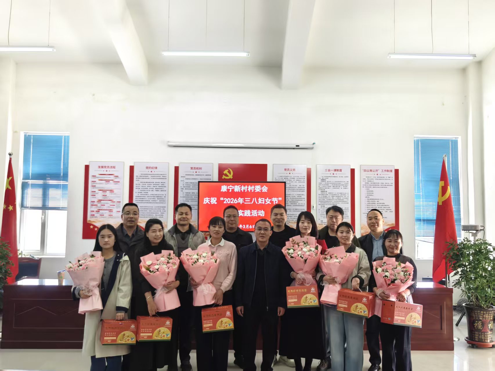 講座結(jié)束后,學(xué)校駐村幫扶工作隊與康寧、幸福新村聯(lián)合開展了“三八婦女節(jié)”慶?;顒樱瑸椤按鍍晌眿D女同志送上了鮮花、節(jié)日禮品和美好祝福。