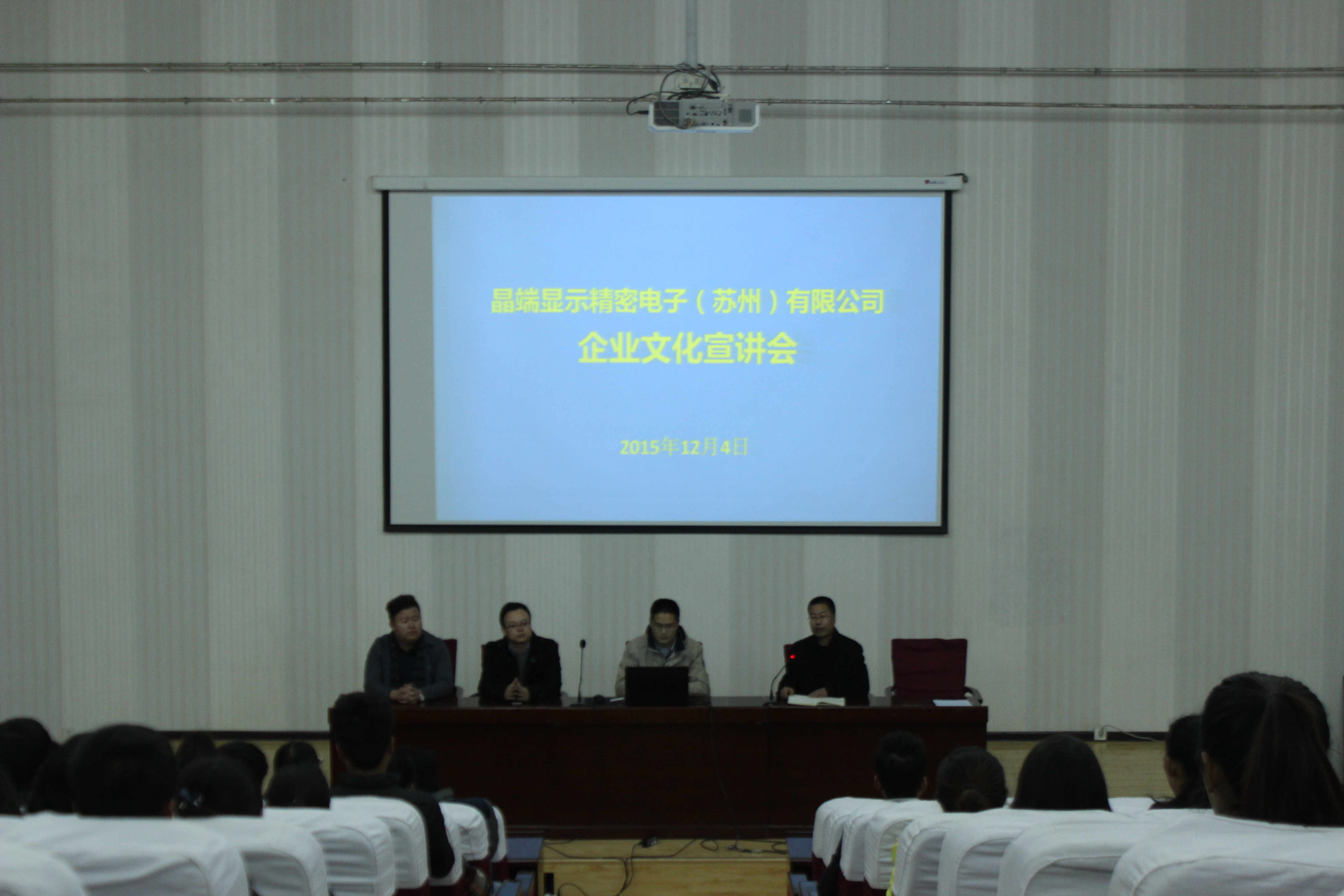 為切實做好2016屆畢業(yè)生就業(yè)工作,加強學院同用人單位的廣泛交流與合作,拓展就業(yè)渠道,培育就業(yè)市場,促使畢業(yè)班同學順利實習、就業(yè),12月4日下午4時,電子信息工程系在學院正德廳舉辦了用人單位宣講招聘會。本次活動邀請了學院校企合作理事單位晶端顯示精密電子(蘇州)有限公司參加,電子類專業(yè)學生180多人參加了本次宣講招聘會。