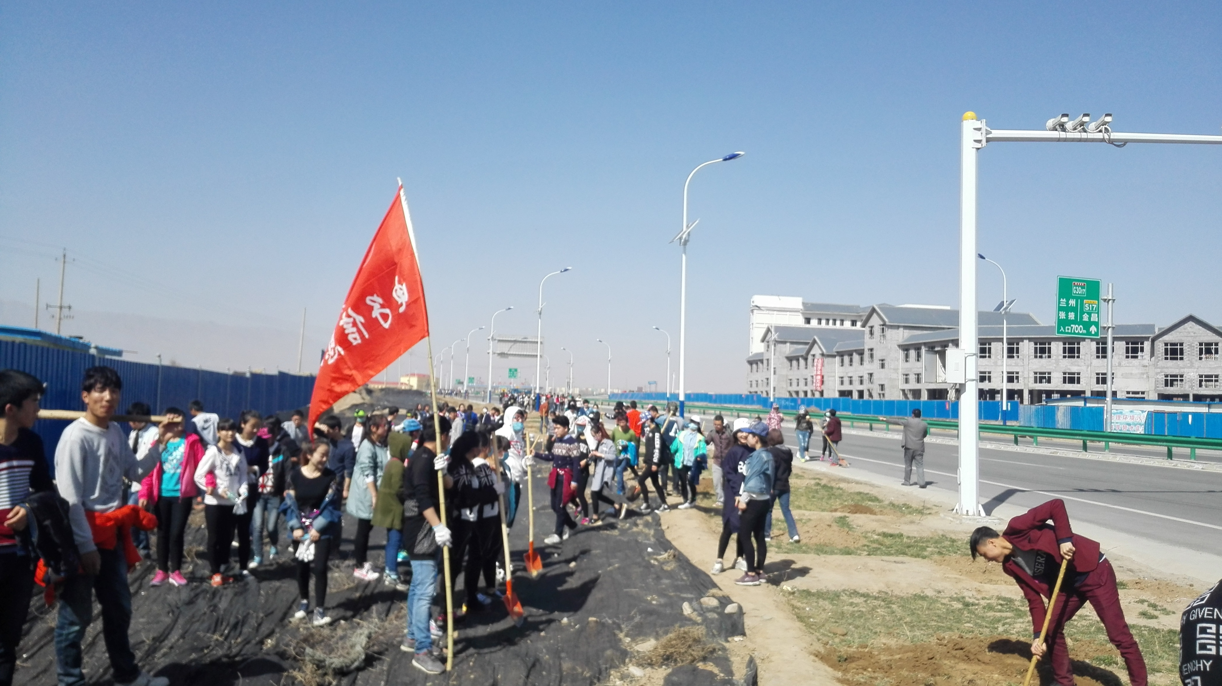 在勞動現(xiàn)場,師生們積極投入,整個(gè)現(xiàn)場一片忙碌。他們用镢頭、鐵锨挖開樹坑,然后細(xì)心地對所挖樹坑進(jìn)行修理,并積極聯(lián)系綠化所負(fù)責(zé)人員進(jìn)行指導(dǎo)確保按要求完成任務(wù)。經(jīng)過全系師生的共同努力,完成了金大路武威北高速入口兩側(cè)樹坑的挖掘任務(wù)。