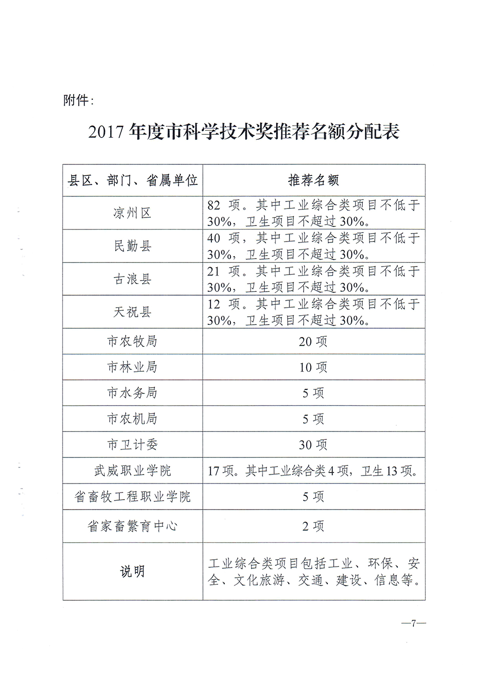 轉(zhuǎn)發(fā)武威市科學(xué)技術(shù)局關(guān)于做好2017年度市科學(xué)技術(shù)獎推薦工作的通知